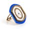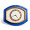 cassa ovale in argento e ottone con smalti guilloché nei toni del blu, quadrante di colore beige con lunetta dorata con numeri arabi, riportante l'iscrizione "8 Days - Swiss Made".
