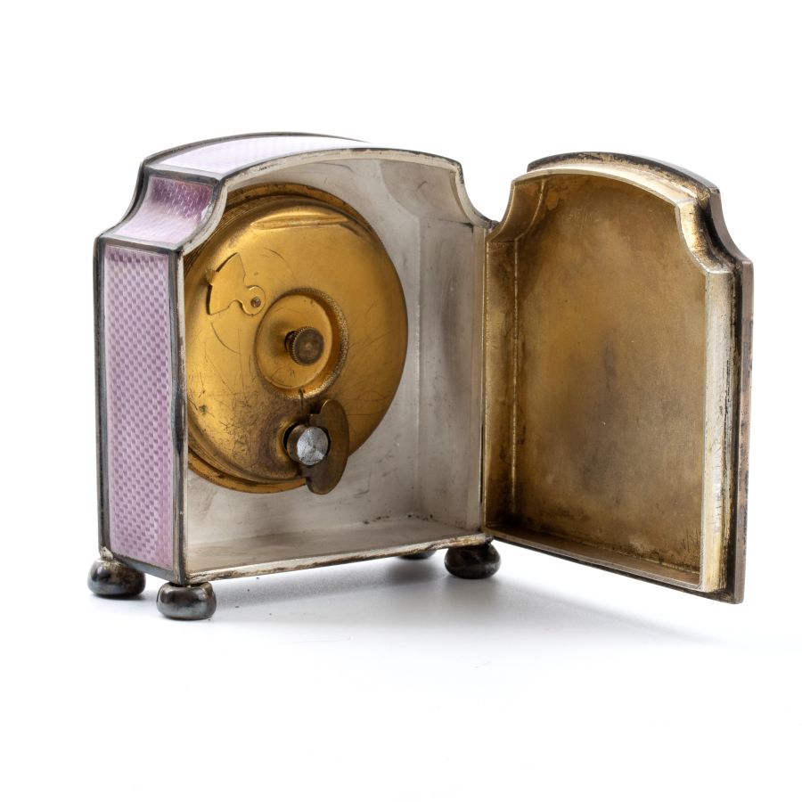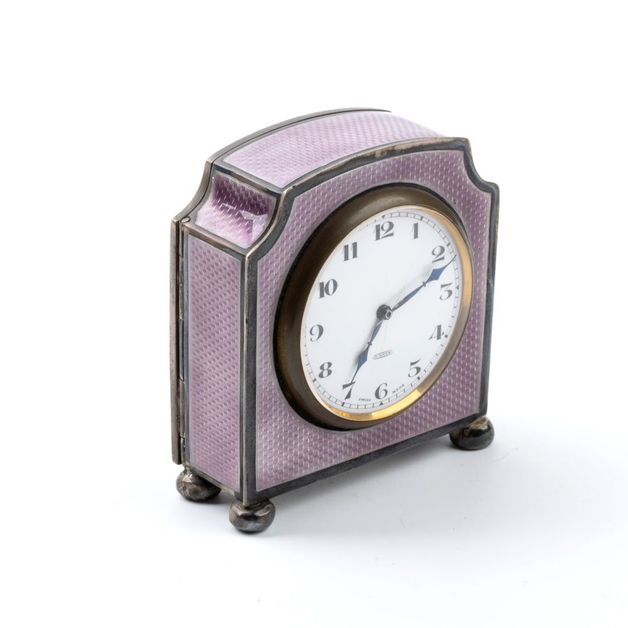 Orologio da tavolo Art Déco in argento e smalti. Londra, 1926
