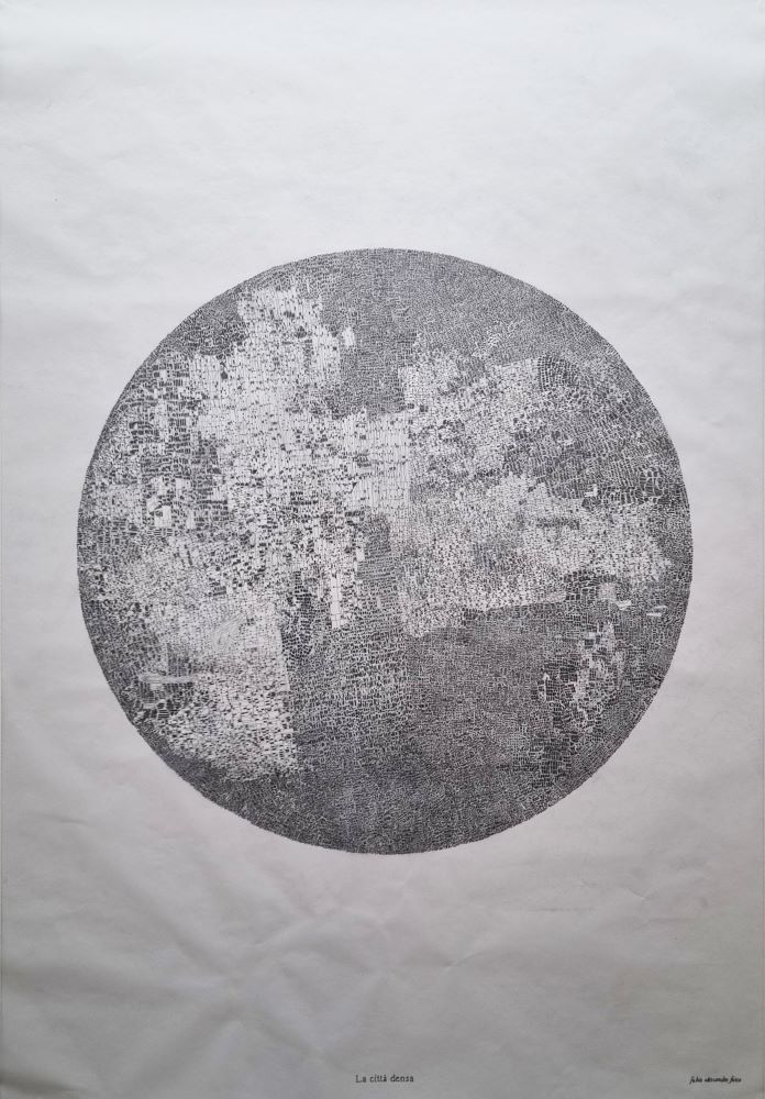 FUSCO FABIO Italia 1969 "La città densa" Matita su carta trasparente Scholler Shammer, cm 61x91. Firmata sul fronte in basso a destra, intitolata al centro.