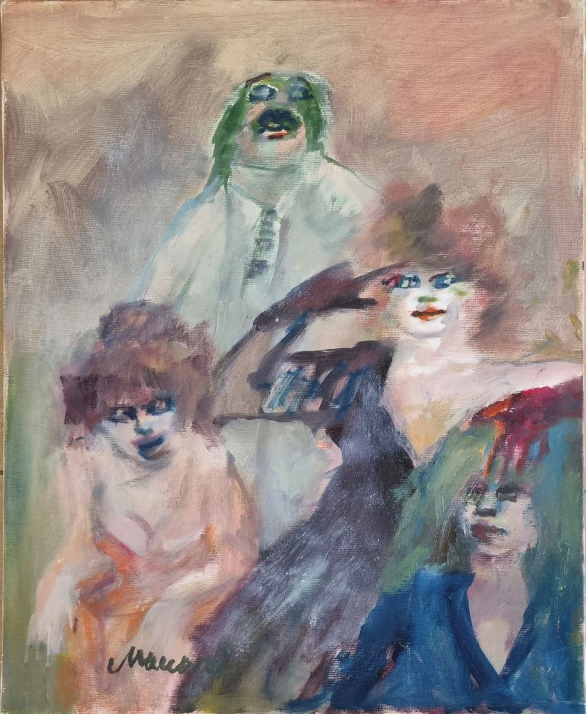 MACCARI MINO Siena 1898 - Roma 1989 "Senza titolo" Olio su tela cm 40x50. Firmato sul fronte in basso a sinistra. Al verso timbro della Galleria d'arte Astotre. Autentica su foto con dedica a cura del Maestro.