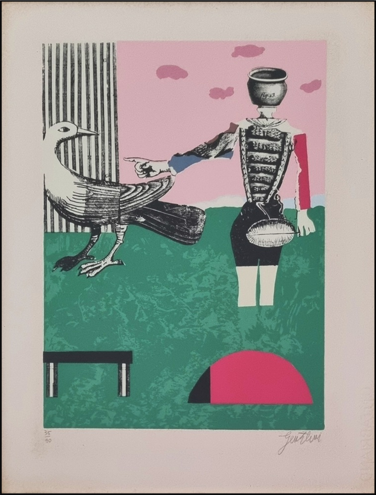 GENTILINI FRANCO Faenza 1909 - Roma 1981 "Senza titolo" Litografia su carta cm 32x42. Firmata sul fronte in basso a destra, tiratura 35/90 a sinistra.