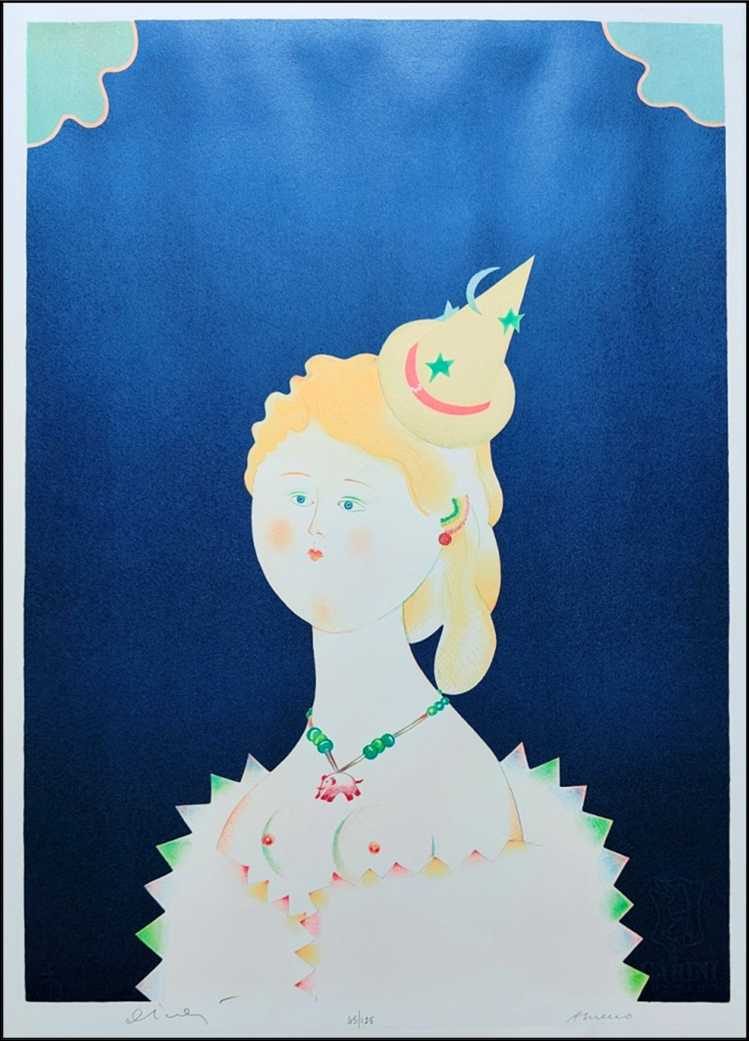 BUENO ANTONIO Berlino 1918 - Fiesole 1984 "Senza titolo" Litografia a quattro mani (Bueno-Alinari) su cartoncino pesante, cm 50,5x70,5. Firma e timbro a secco sul fronte in basso a destra e sinistra, tiratura 45/125 al centro. Facente parte della Cartella Alieno.