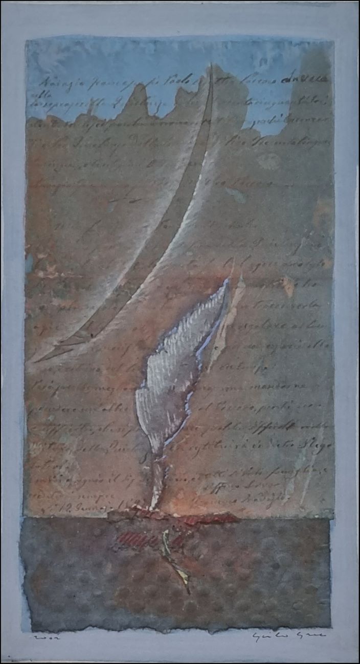 GRECO GIULIO Caselle in Pittari 1949 "Cipresso alla luna" Tecnica mista su carta cm 15x29 del 2002. Firmata sul fronte in basso a destra, datata a sinistra. Autentica su foto a cura del Maestro.