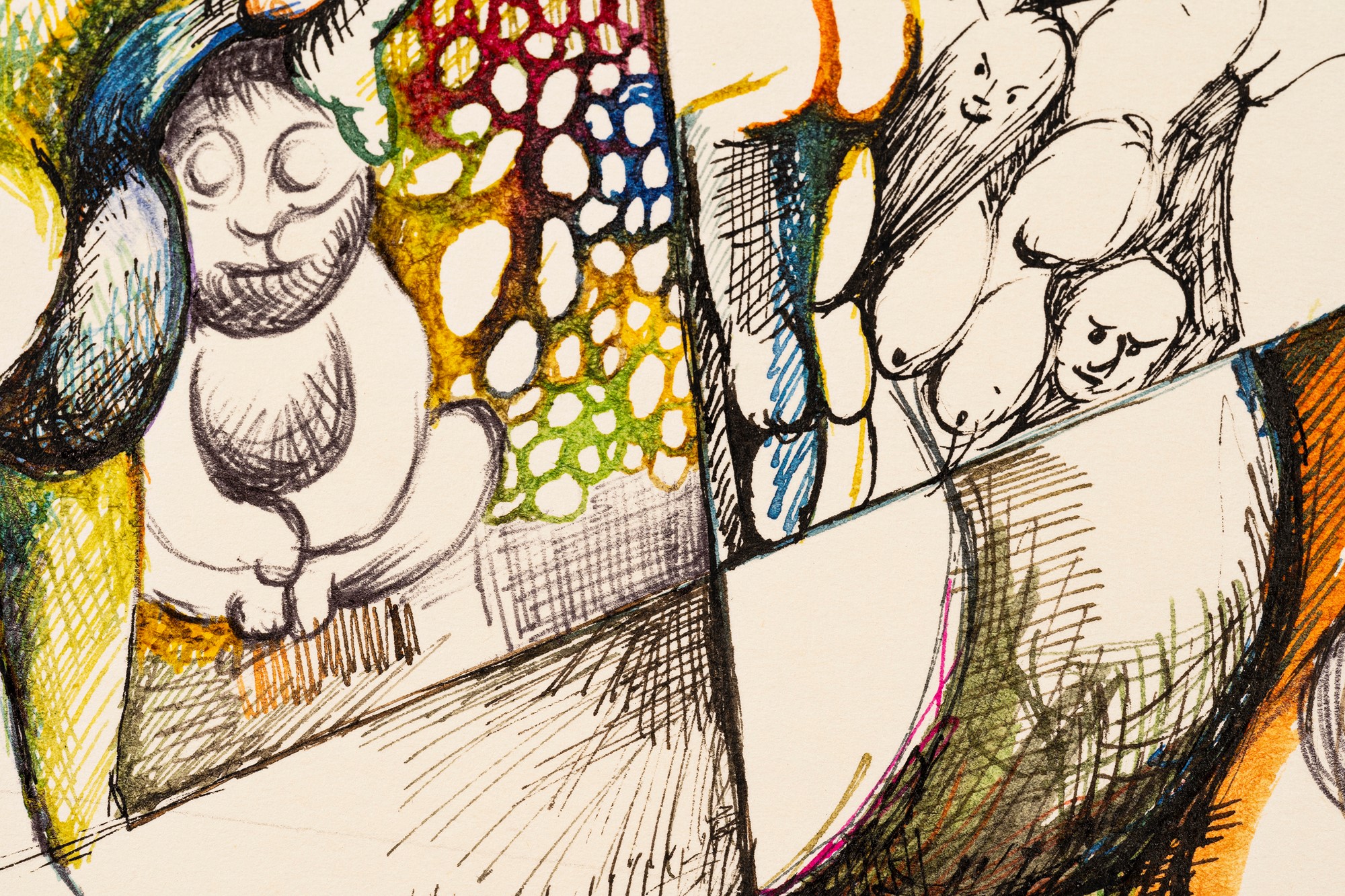 Rapidograph e acquerello su carta, 1968-1970.Rapidograph e acquerello su carta, 1968-1970.