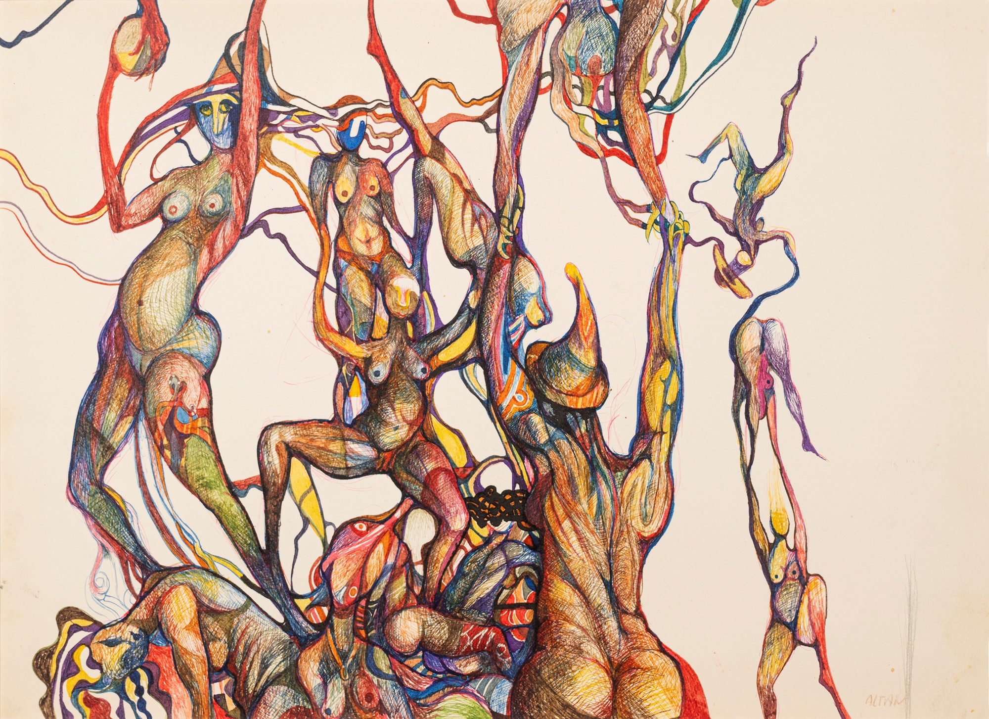 Rapidograph e pastelli su carta, 1968-1970.Rapidograph e pastelli su carta, 1968-1970.