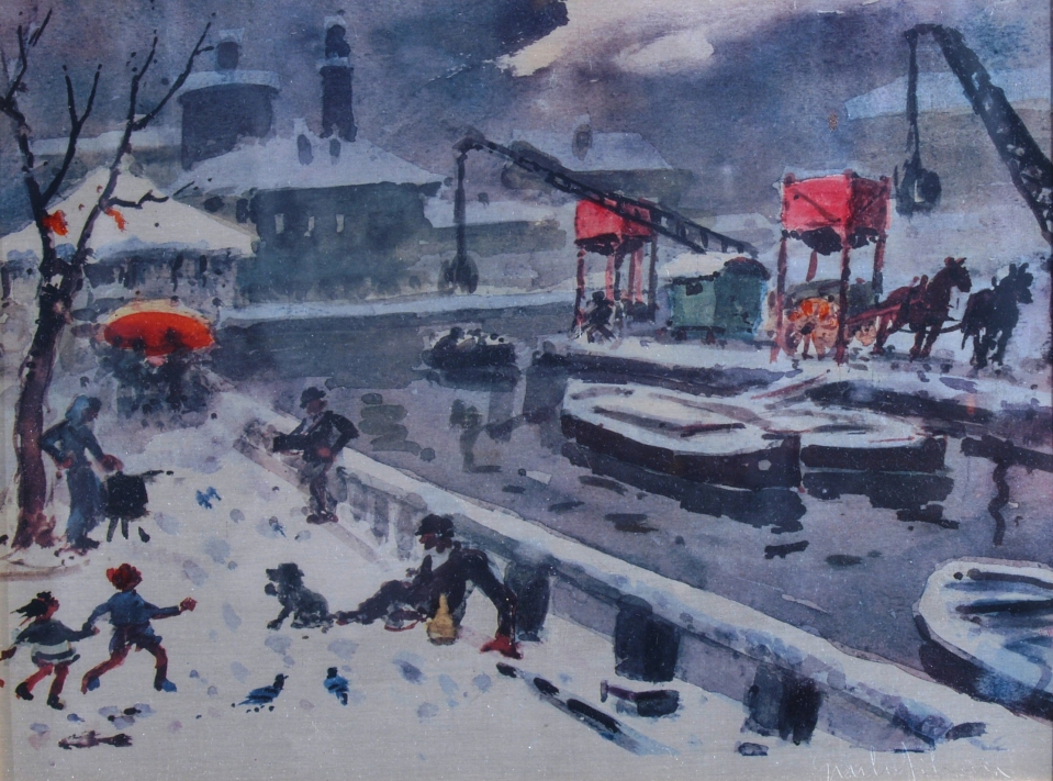 FALZONI GIULIO (Marmirolo 1900 - Milano 1978) "La darsena" Argentografia,...