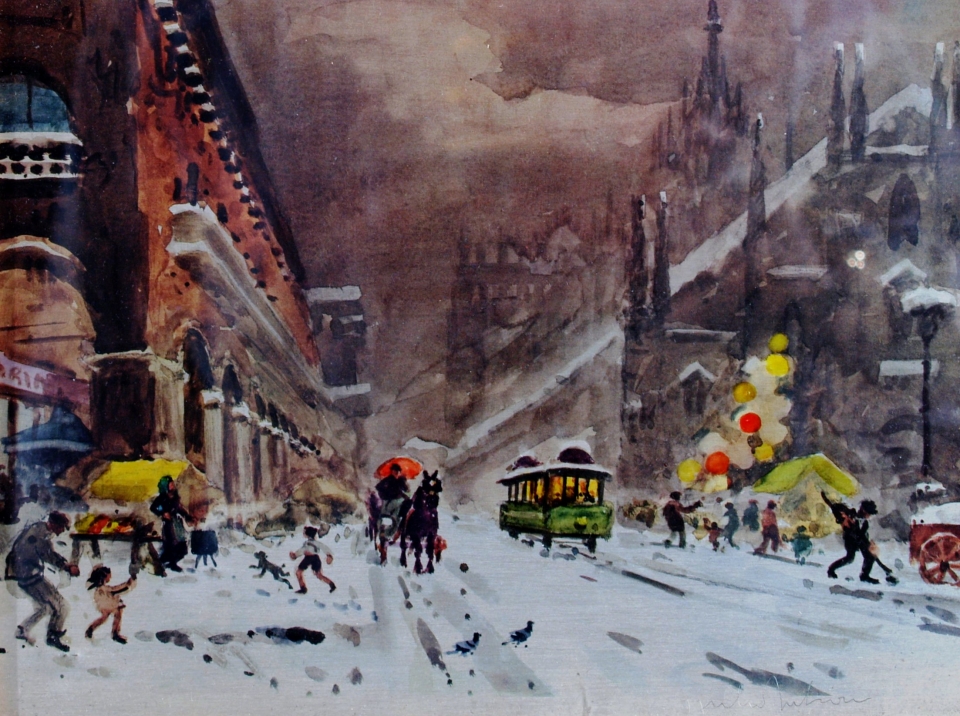 FALZONI GIULIO (Marmirolo 1900 - Milano 1978) "Piazza del Duomo"...