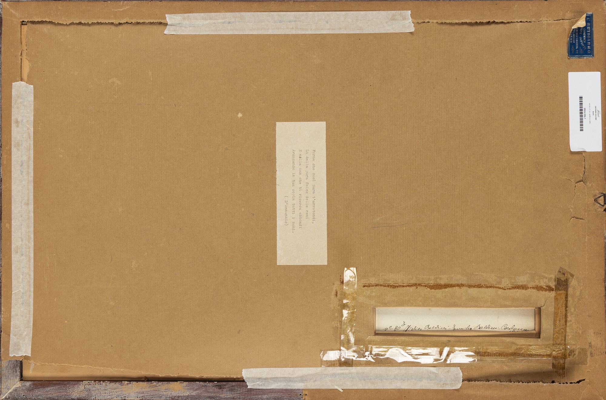 al retro, sul cartoncino di supporto, iscrizione per autentica di Emilia Boldini Cardona n. 80 - 1931 ed iscrizione del pittore con numero e titolo: 14 - Nudo; sul cartoncino di chiusura, etichetta con poesia di Gabriele d'Annunzio.