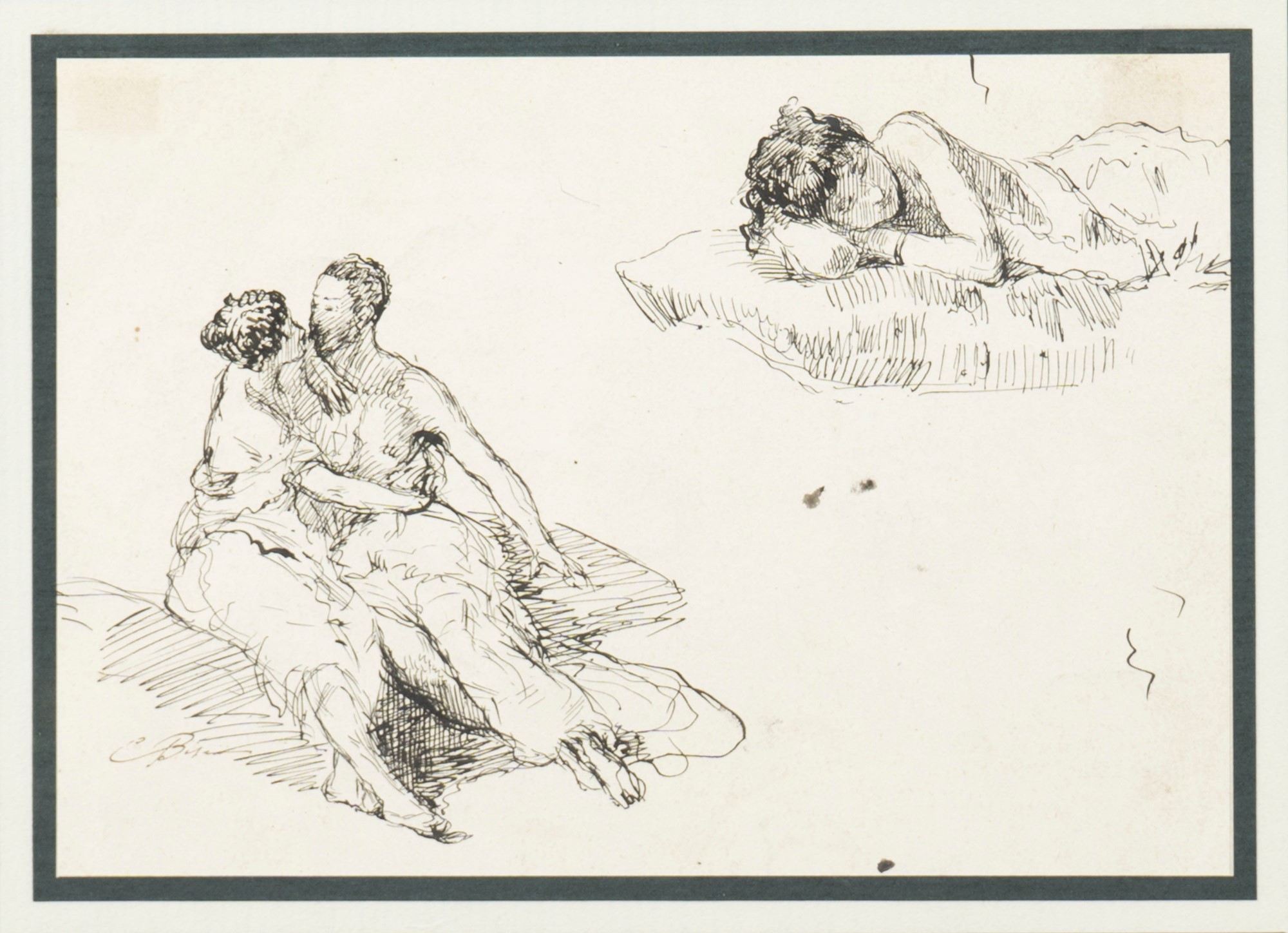 Cesare Biseo (Roma 1843-1909) - Studi di amanti e donna dormiente