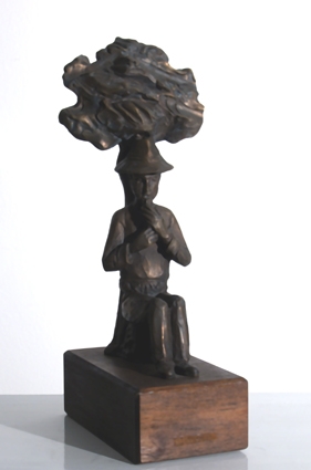 "Pifferaio seduto" 1974 Scultura in bronzo, fusione in bronzo a cera persa con tiratura cm. H: 29.00 Firma e tiratura alla base. Certificato di autenticità  su foto rep. 4385 della Galleria Pace (Mi).