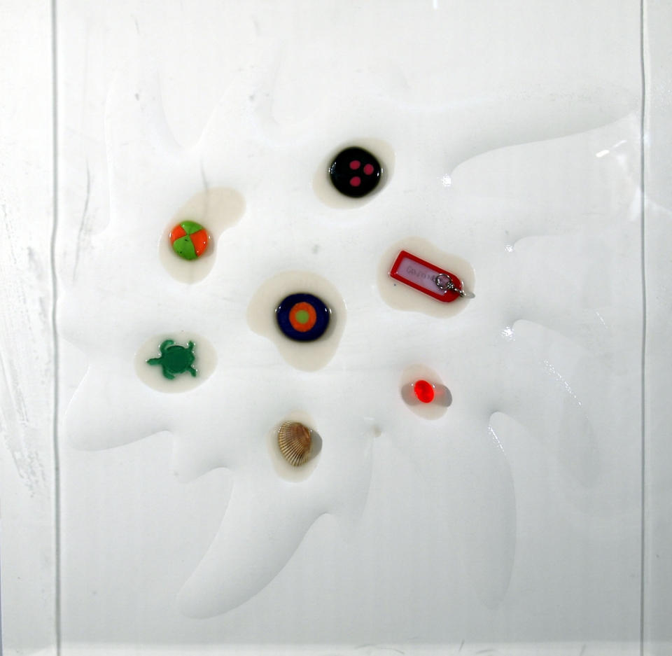 "BANG 10-37" Resine, oggetti, colore serigrafico, carta, legno cm. H: 50.00 L: 50.00 Opera unica. Firma, titolo, descrizione e misure al retro. A tergo dell'opera numero d'archivio 0114360.