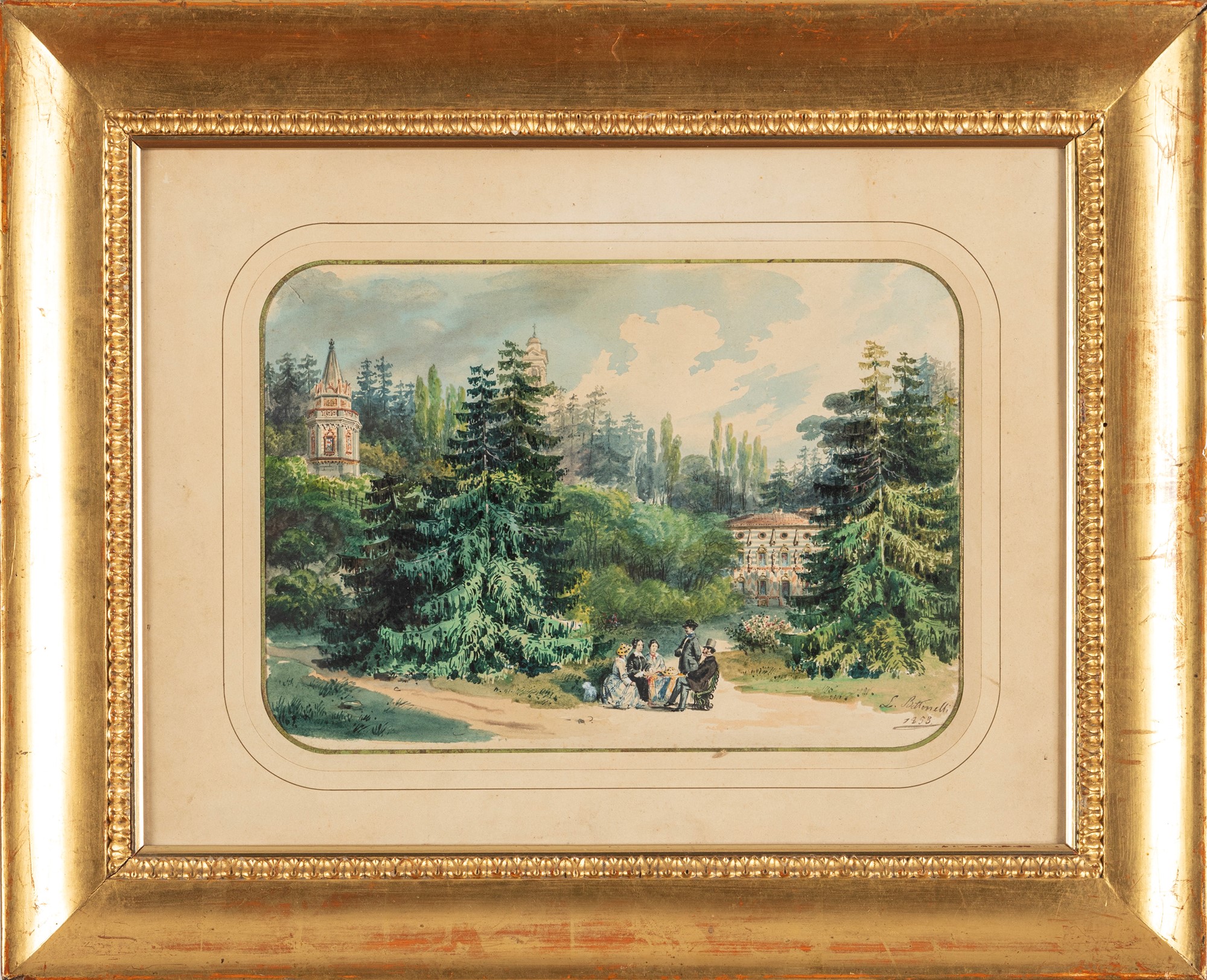 Luigi Bettinelli (Bergamo 1824-1892) - Conversazione al parco, 1853
