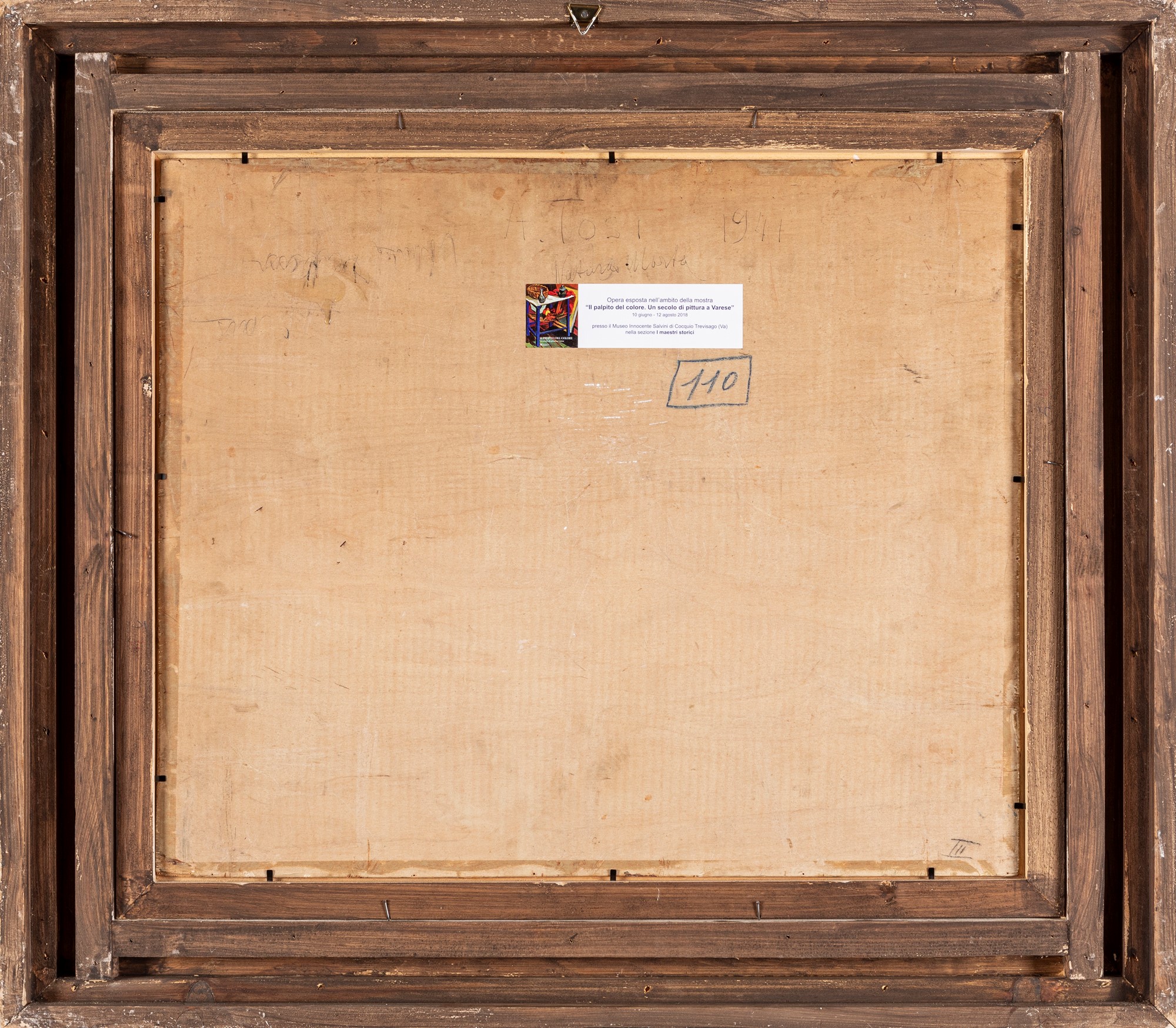 al retro, sul compensato, titolato, firmato e datato 1941; ed etichetta di esposizione Il palpito del colore. Un secolo di pittura a Varese, Museo Innocente Salvini, Cocquio Trevisago (VA), 10 giugno-12 agosto 2018