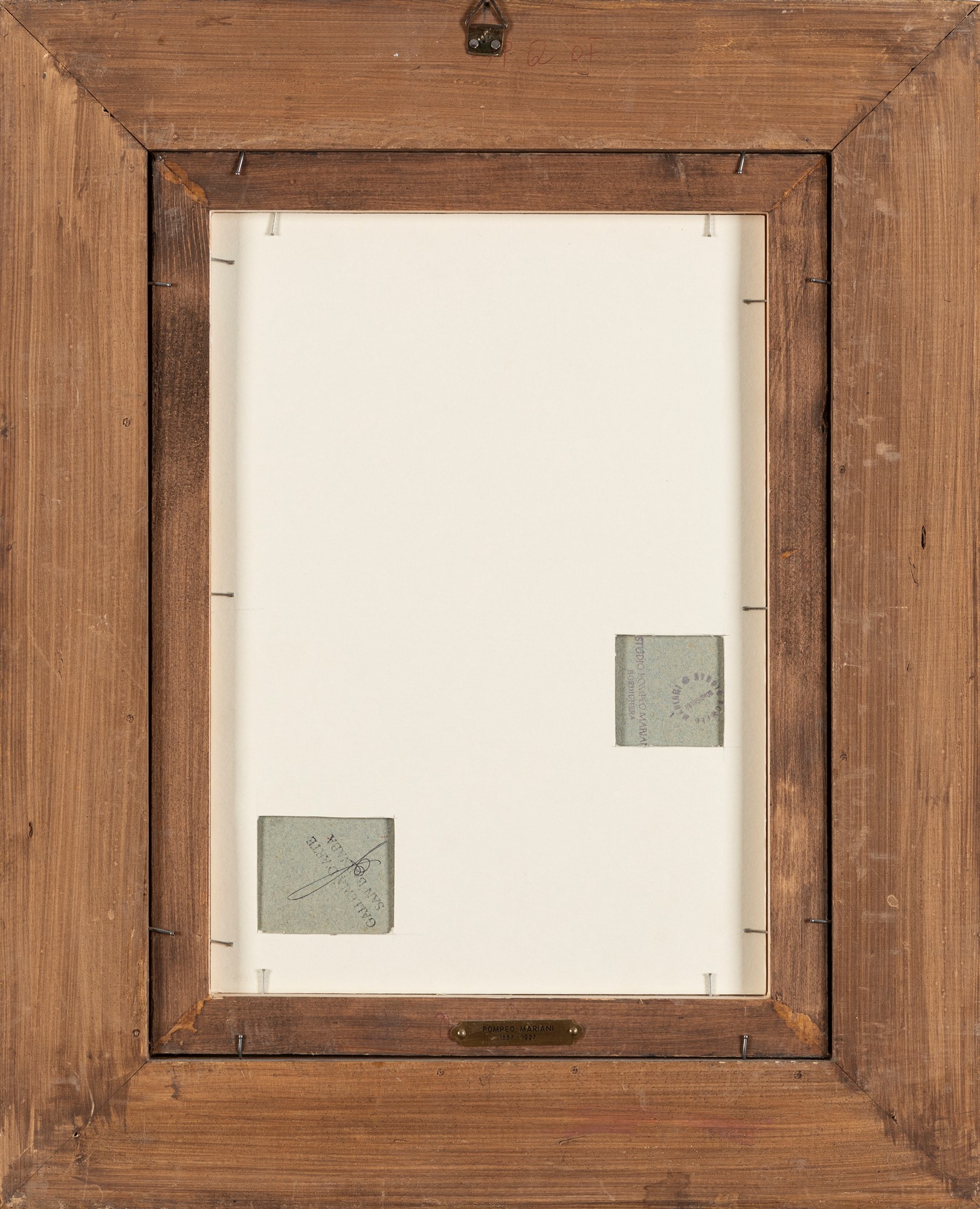 al retro, sul cartone, timbri dello Studio Pompeo Mariani di Bordighera e della Galleria d'Arte San Barnaba di Milano