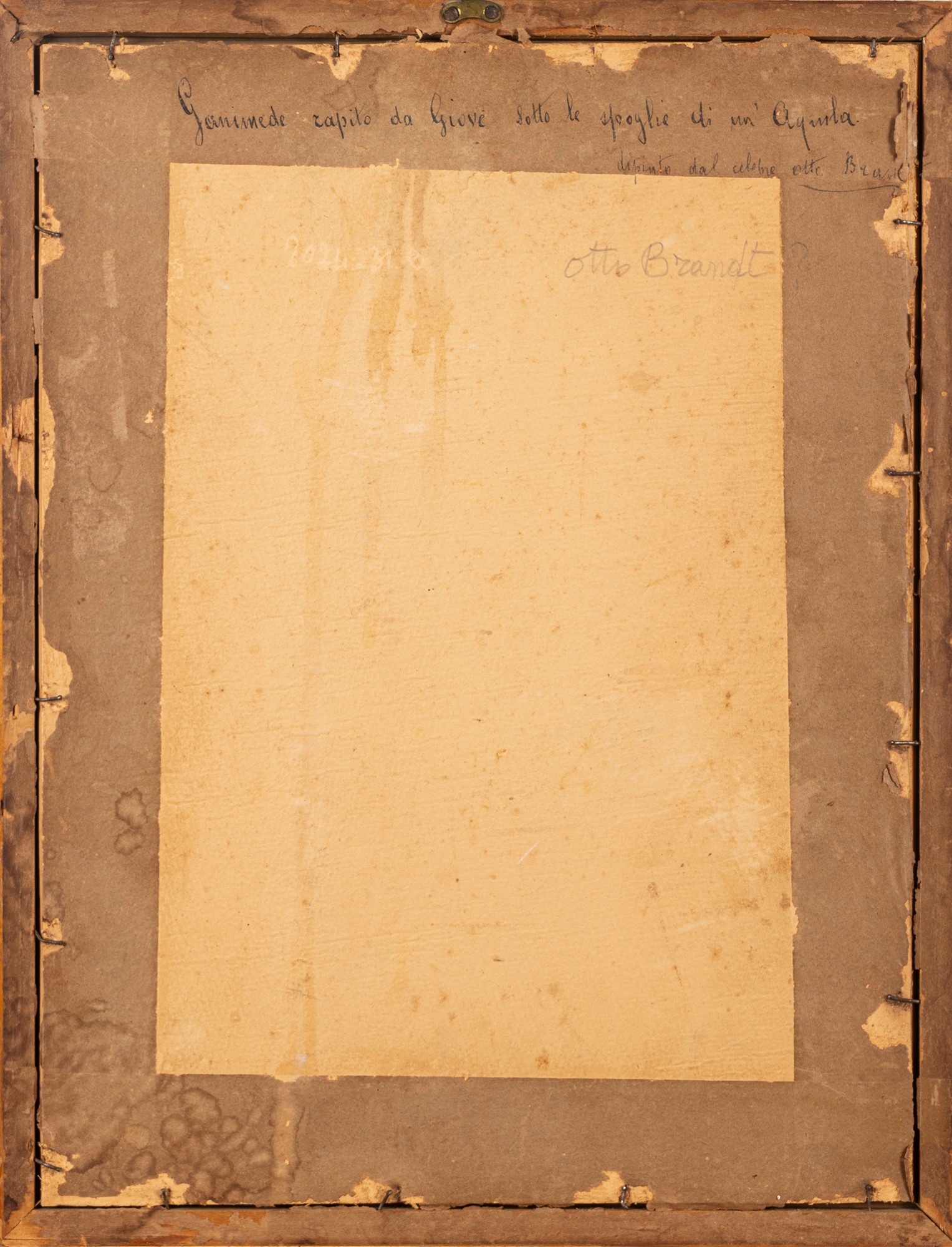 al retro, sul cartone di chiusura, antica scritta con riferimento all'opera e all'artista