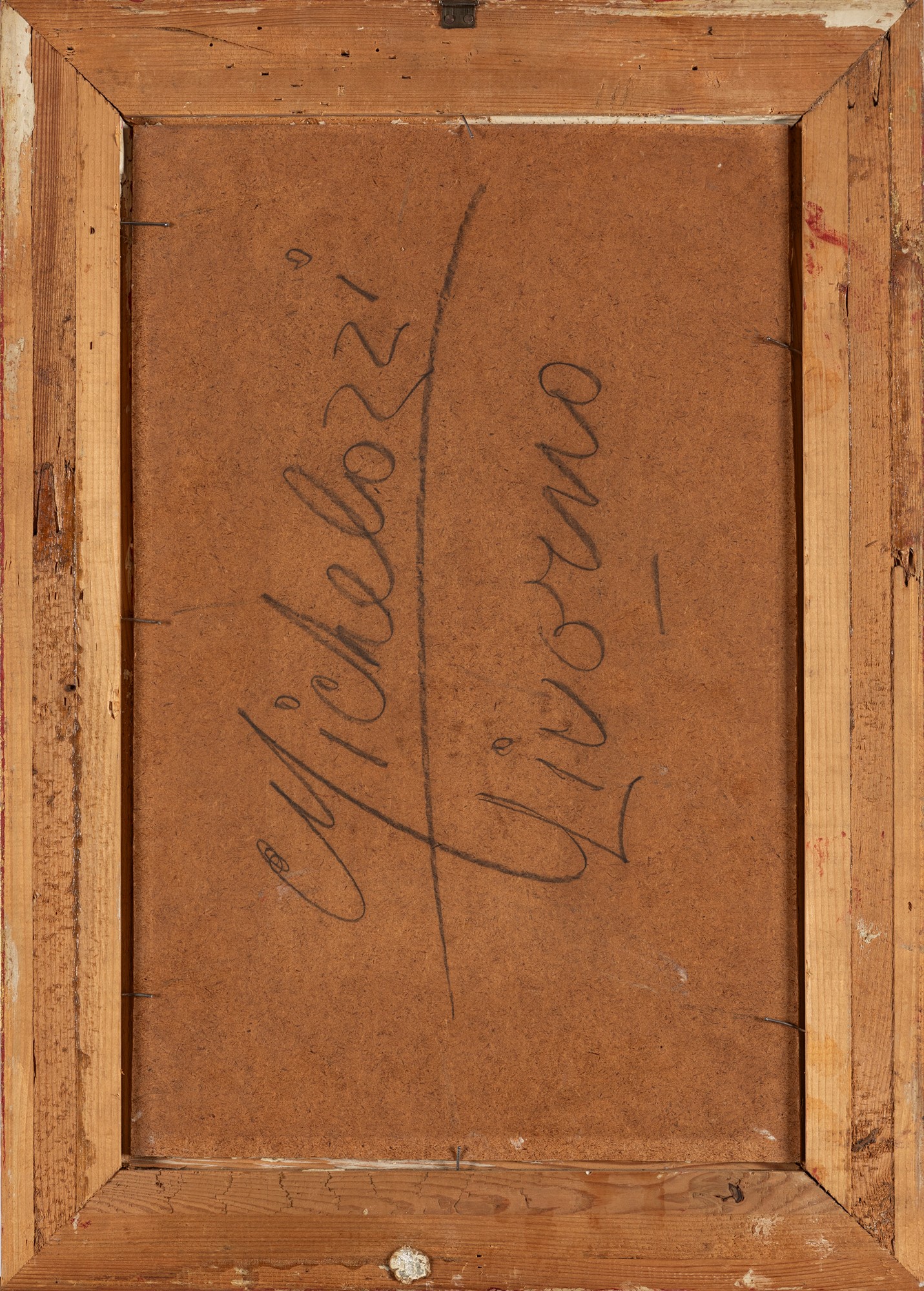 al retro, firmato sulla masonite: Michelozzi Livorno