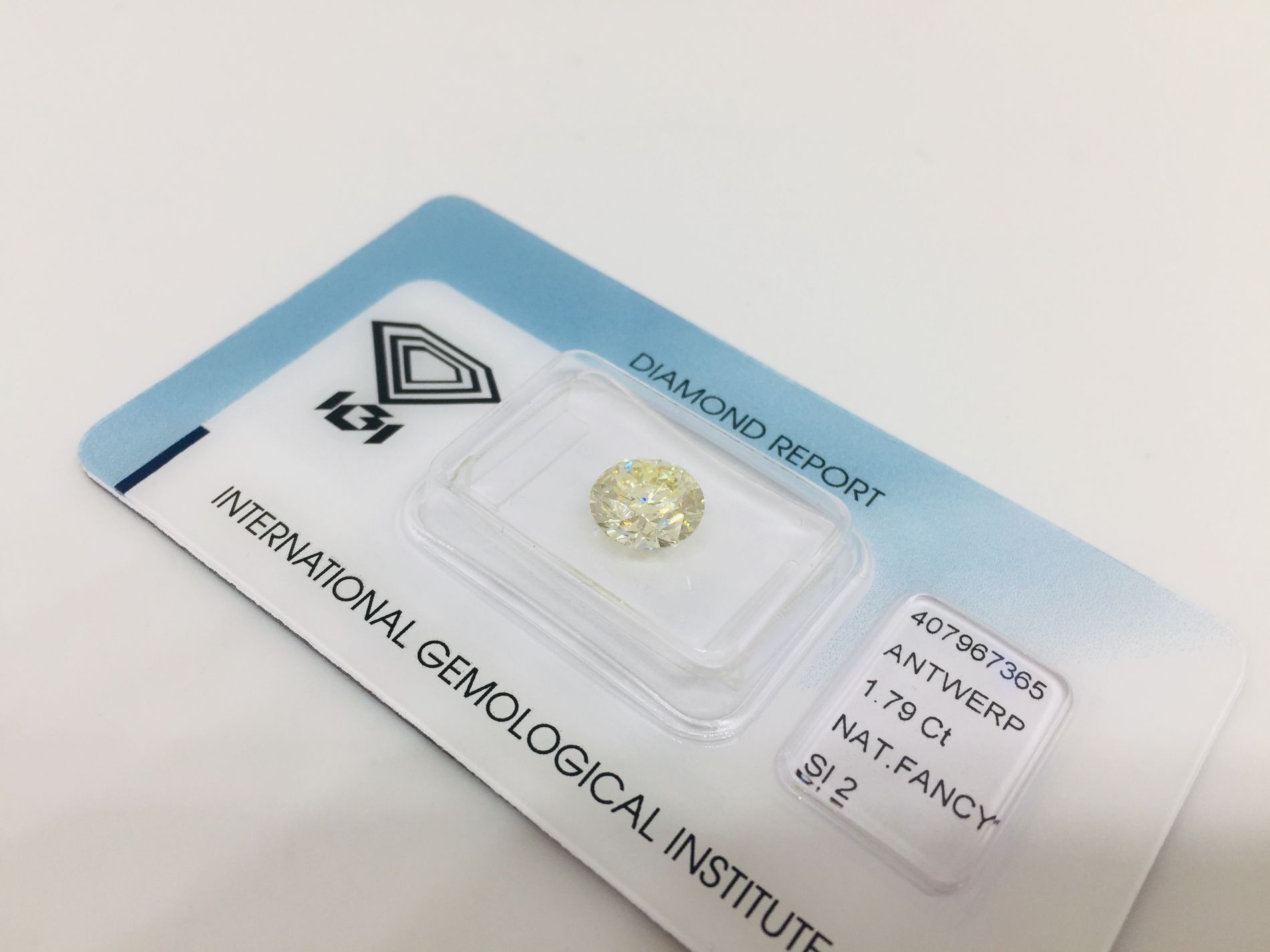 DIAMANTE NATURAL POLISH 1,79 CARATI COLORE FANCY GIALLO CHIARO - PUREZZA SI2 - TAGLIO BRILLANTE - CERTIFICATO IGI - 836