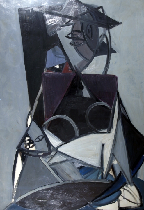 "Figure astratte" 1949 Olio su tela cm. H: 100.00 L: 70.00 Firma ed anno al retro. Timbro al retro della Galleria Berlanda (Mi). Autentica su foto dell'Archivio delle Opere di Roberto Crippa a cura di Galleria Pace (Mi) con numero A12.