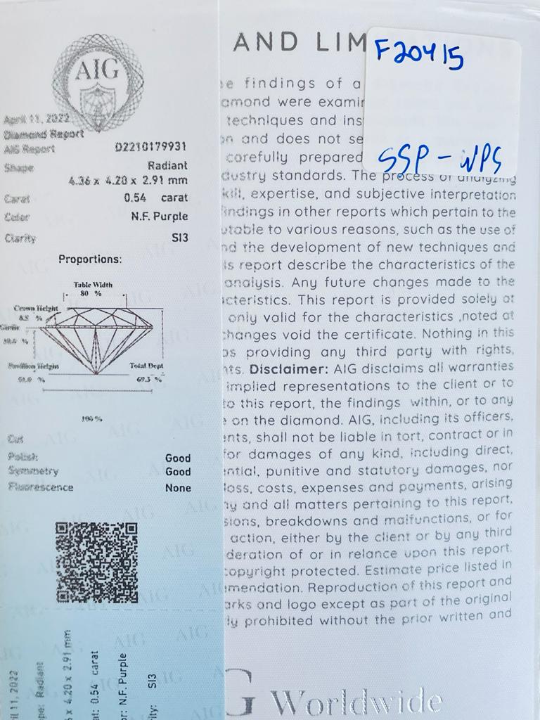 Lotto 104 | DIAMANTE 0,54 CT FANCY VIOLA - SI3 - TAGLIO RADIANTE - F20415