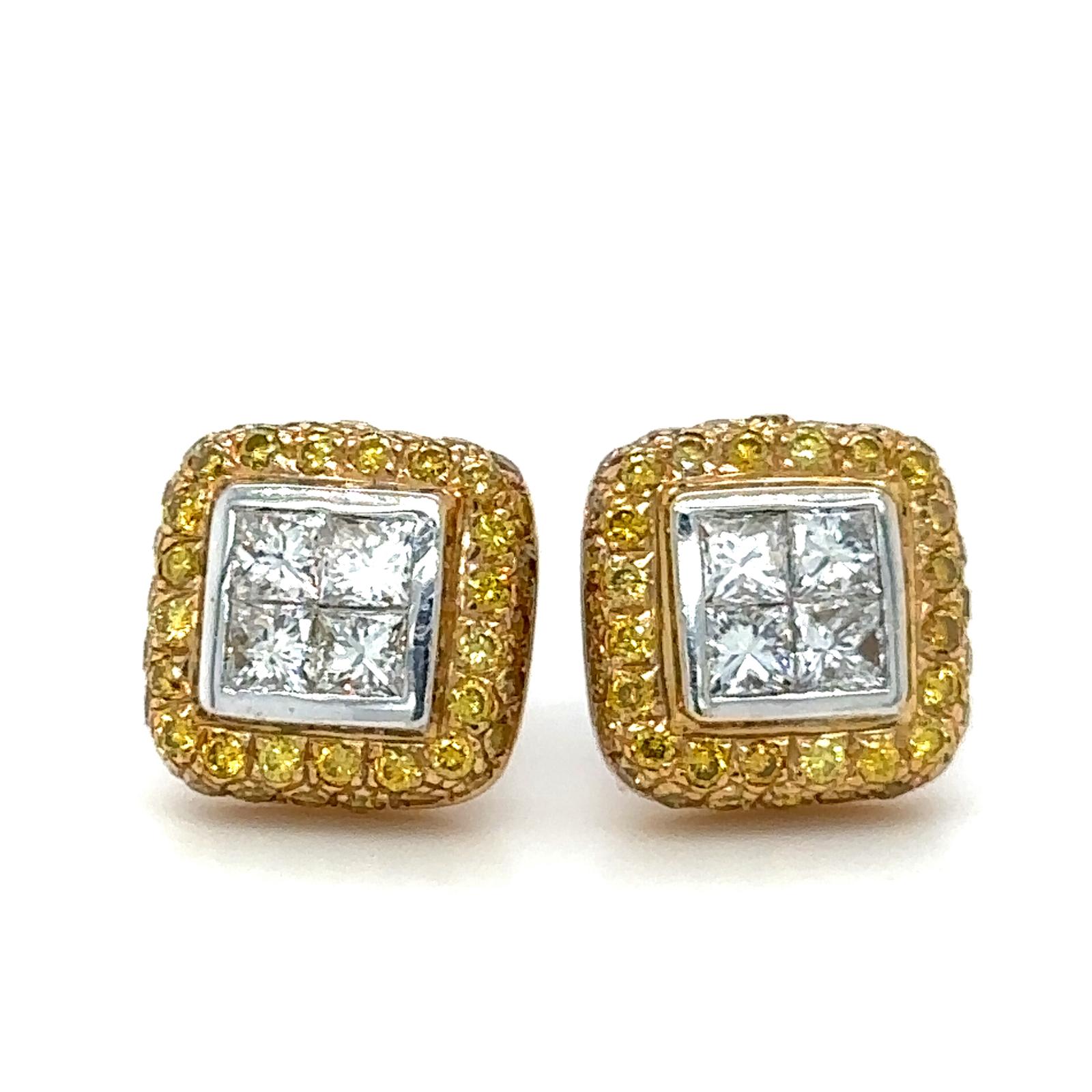 ORECCHINI IN ORO GIALLO 18K 7.28 GR CON DIAMANTI PER 1.20 CARATI COLORE G-H PUREZZA VS + DIAMANTI PER 1.01 CARATI FANCY GIALLO INTENSO - PUREZZA VS - CERTIFICATO GEMMOLOGICO MAROZ DIAMONDS LTD MEMBRO ISRAEL DIAMOND EXCHANGE - HR1009