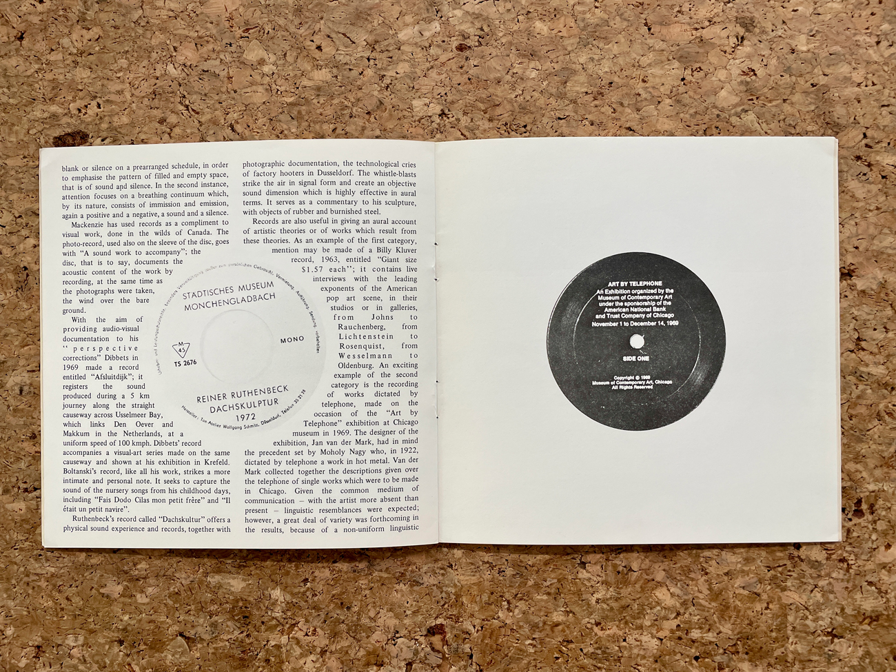 Raro catalogo riccamente a cura di Germano Celant inerente una rassegna di artisti che hanno utilizzato il disco / LP per le loro creazioni artistiche, con un elenco di dischi