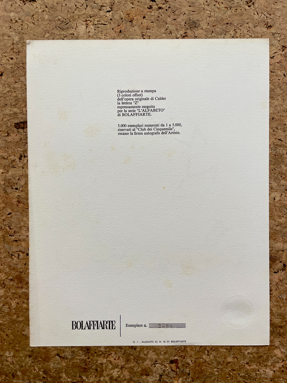EDIZIONI BOLAFFIARTE (ALEXANDER CALDER) - Lettera Z, Ottobre - Novembre 1977