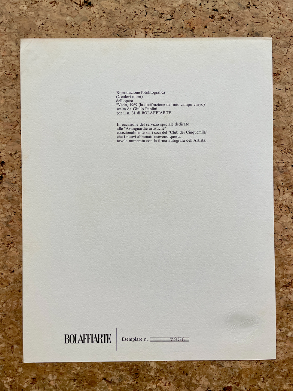 EDIZIONI BOLAFFIARTE (GIULIO PAOLINI) - Vedo, 1969 (la decifrazione del mio campo visivo)