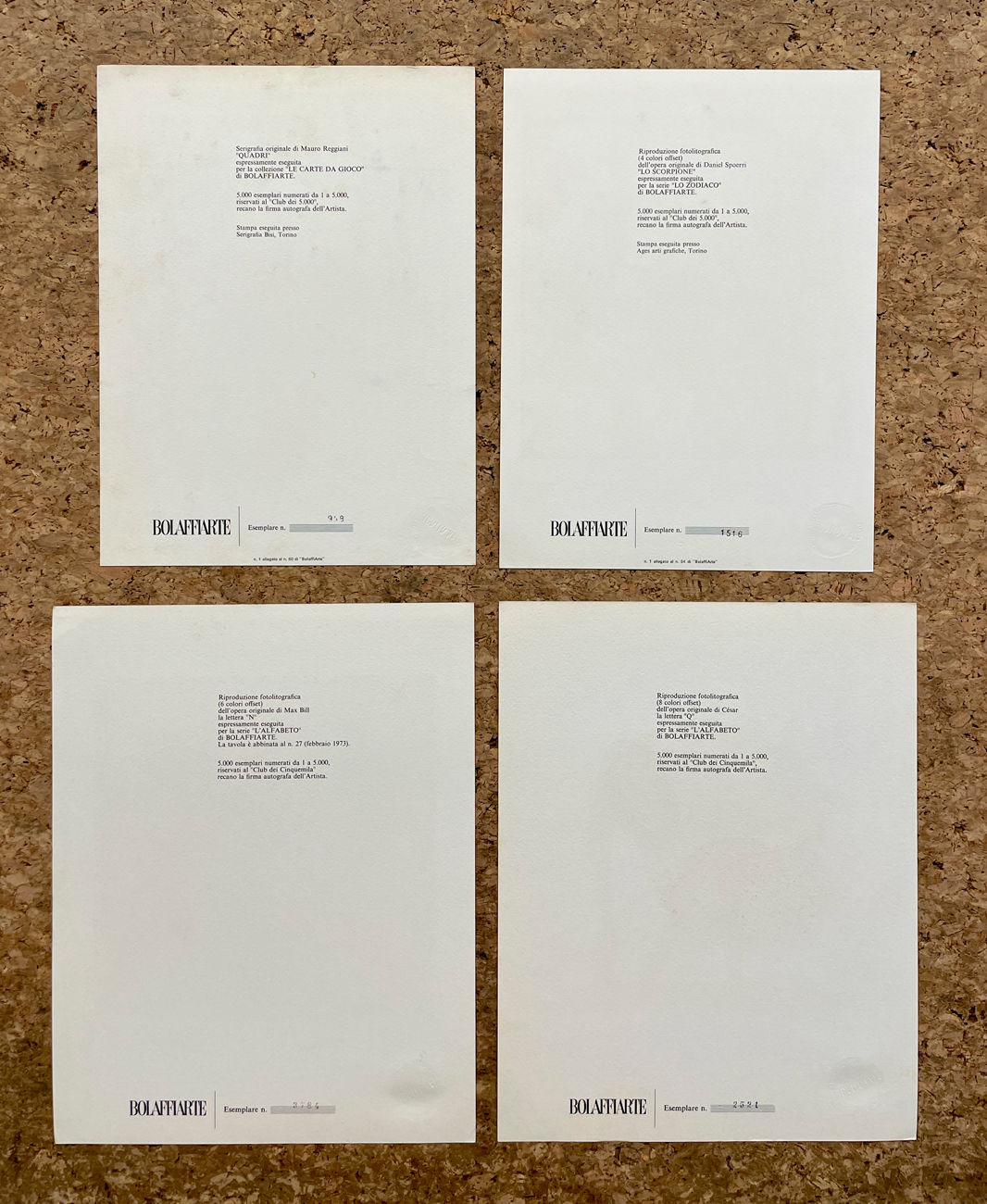 EDIZIONI BOLAFFIARTE (REGGIANI, SPOERRI, CESAR, BILL) - Lotto unico di 4 opere