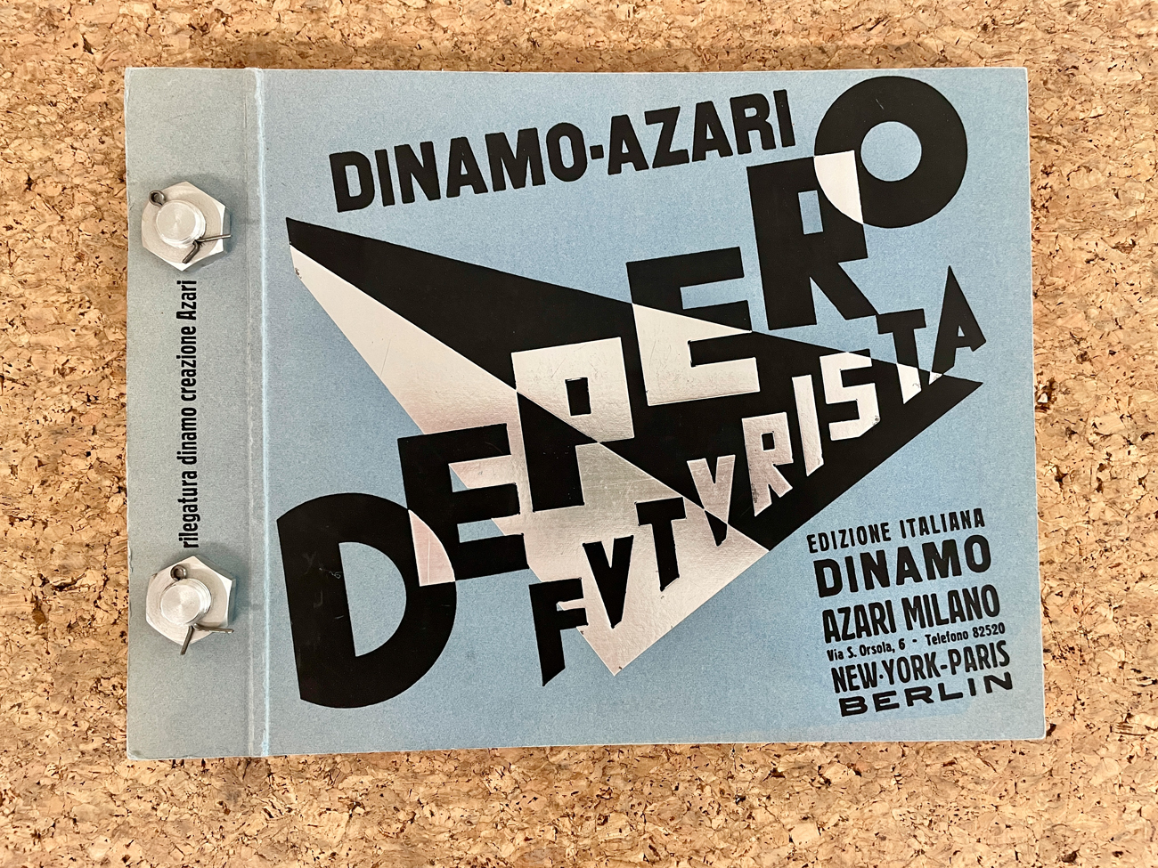 Il volume è una ristampa del celebre 'Libro imbullonato' di Fortunato Depero, realizzato nel 1927 ed edito dalla Casa Editrice Dinamo Azari, Milano