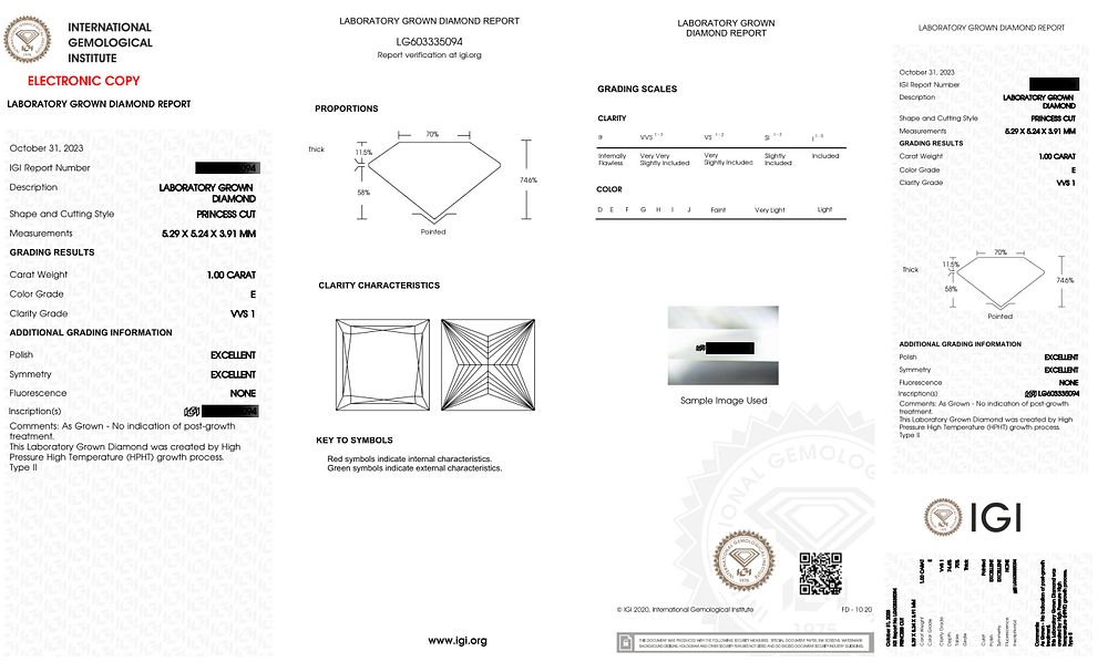 CERTIFICATO IGI CON NUMERO DI REPORT INCISO NELLA CORONA DEL DIAMANTE