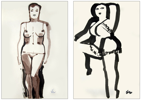 LUCIO VENNA (Giuseppe Landsmann) Venezia 1897 – Firenze 1974 Lotto composto da 2 opere: Senza titolo Inchiostro su carta 25 x 17,7. Firma in b. a d. Senza titolo Inchiostro su carta 25 x 17,7. Firma in b. a d.