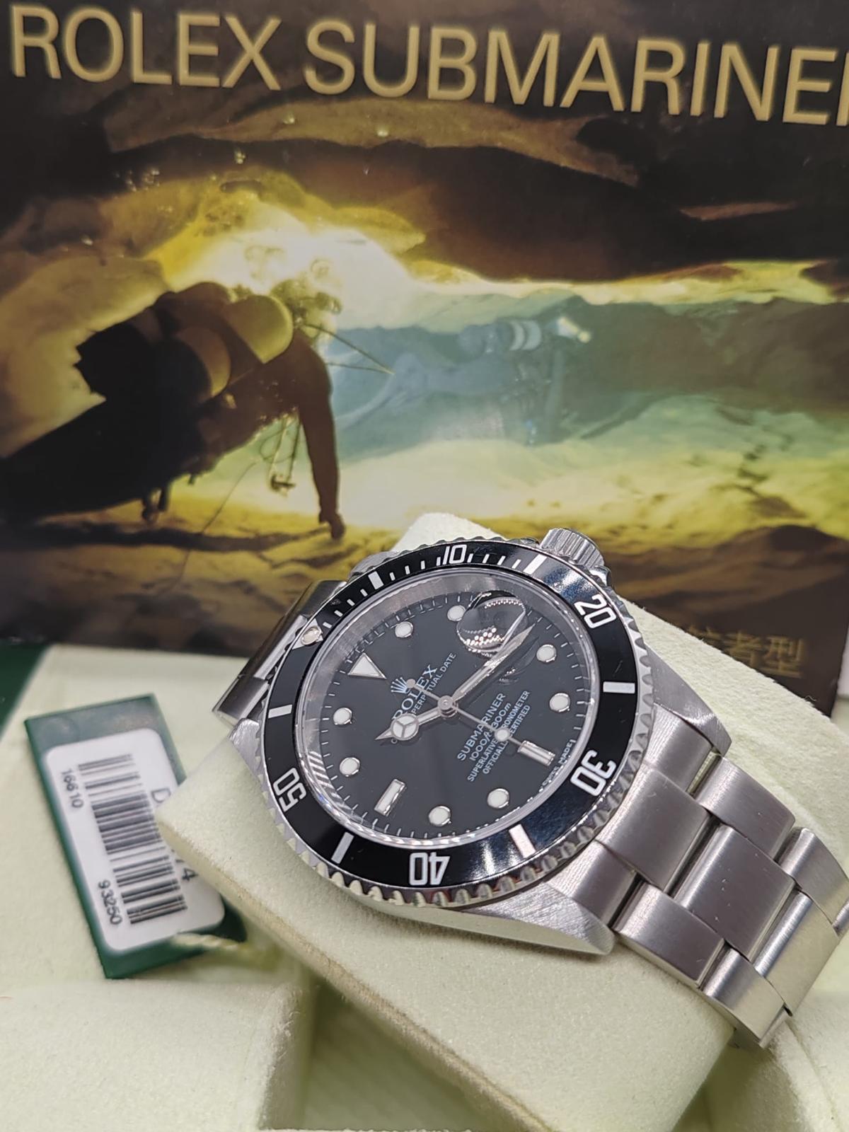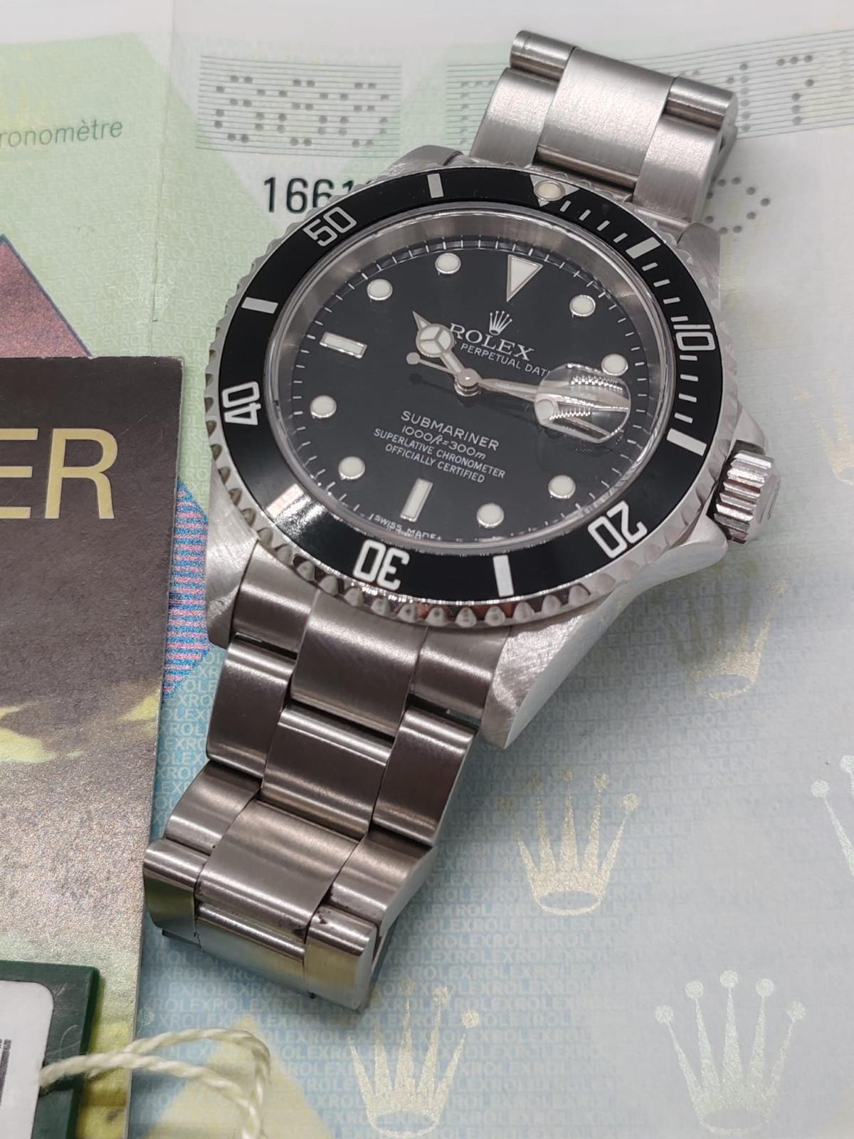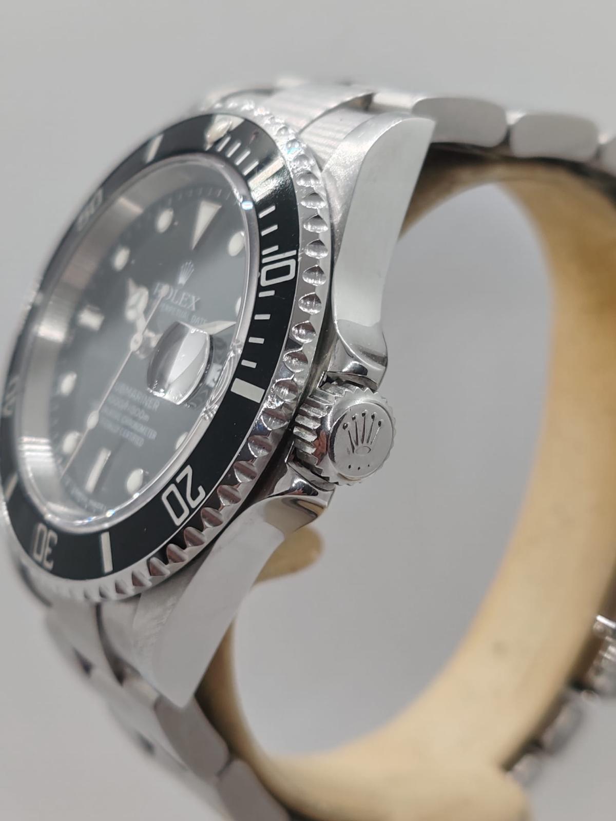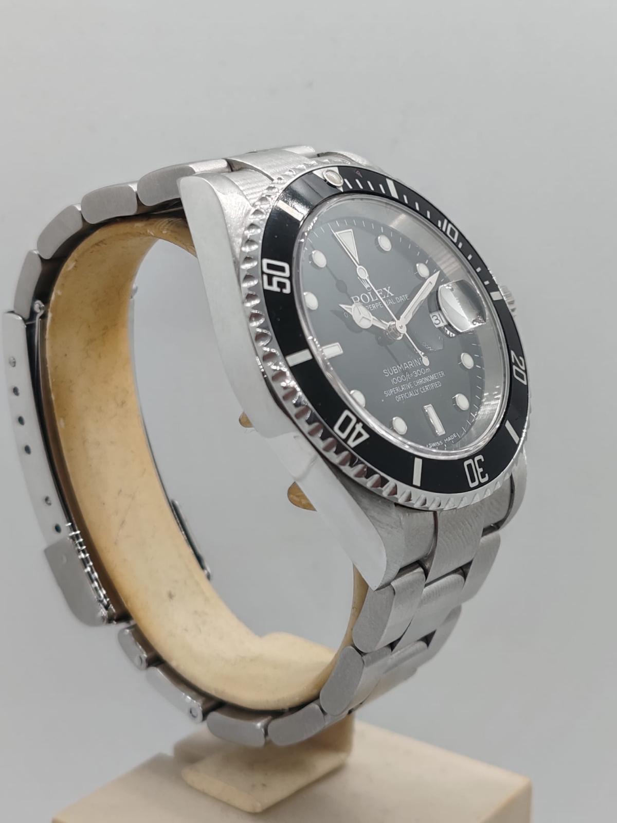 Marca Rolex Modello (Orologio) Submariner Date Numero di referenza 16610 Carica Automatico Materiale della cassa Acciaio Materiale cinturino Acciaio Anno di produzione 2005 Condizione Usato (Ottimo) L'articolo presenta segni di usura lievi, come ad esempio graffi leggeri, ma non percepibili al tatto. documenti originali, no box Materiale della cassa Acciaio Diametro 40 mm Prova Impermeabile 30 ATM Materiale lunetta Acciaio Vetro Vetro zaffiro Quadrante Nero Numeri sul quadrante Senza numeri Cinturino Materiale cinturino Acciaio Colore cinturino Acciaio Chiusura Déployante Materiale chiusura Acciaio Funzioni Data
