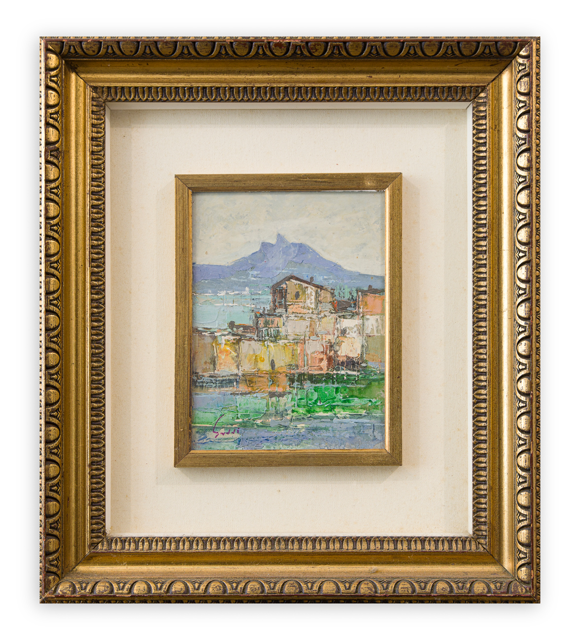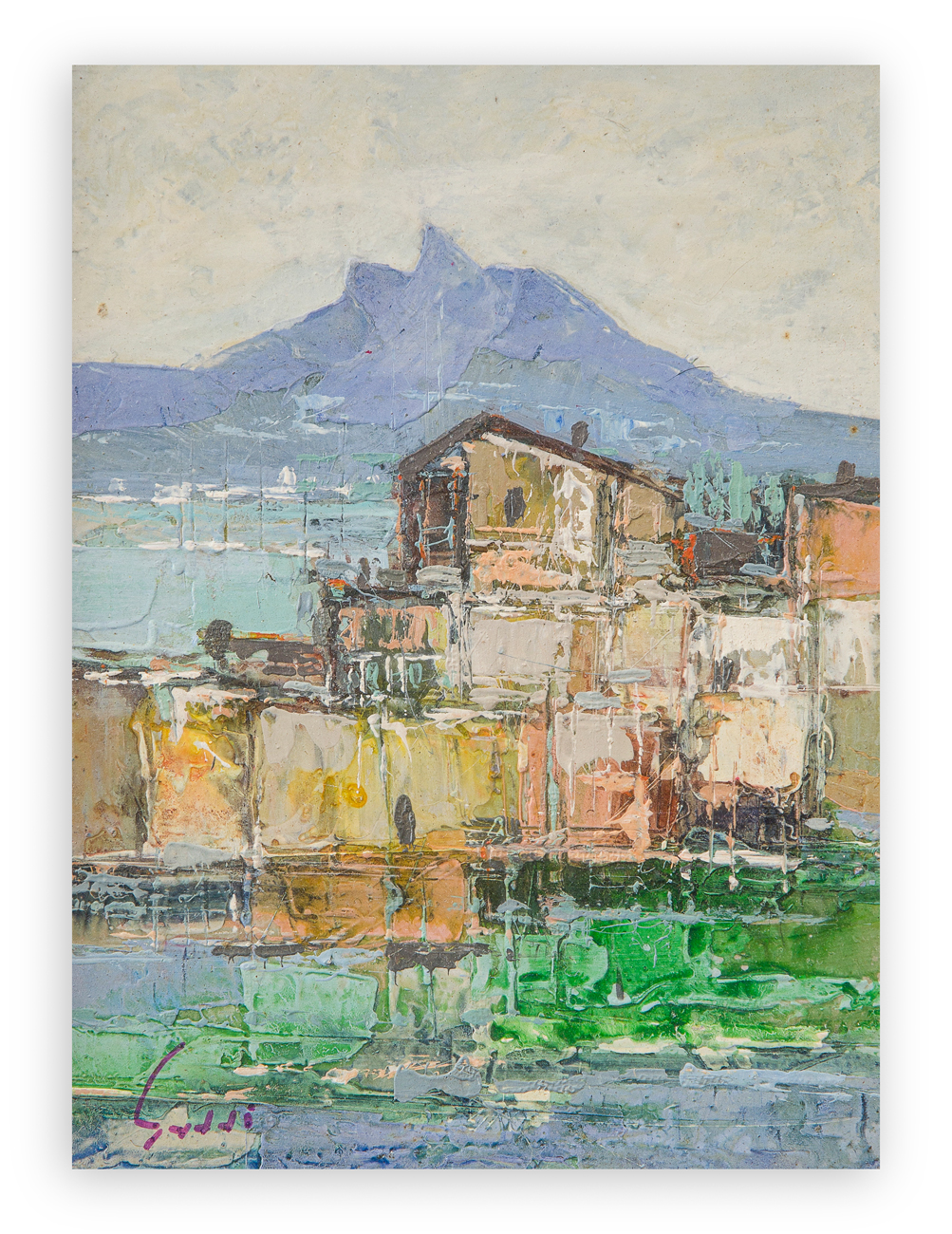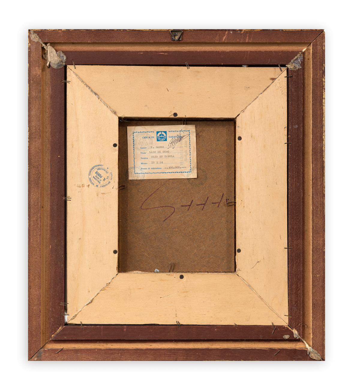 Etichetta e timbri della Galleria d'Arte Merighi (Varazze)