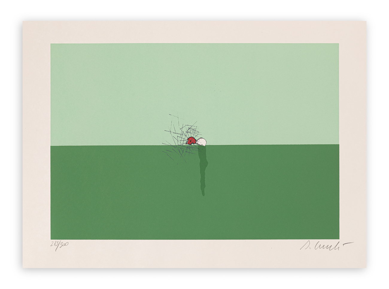 Firma e numerazione (Esemplare 283/300) a matita al fronte