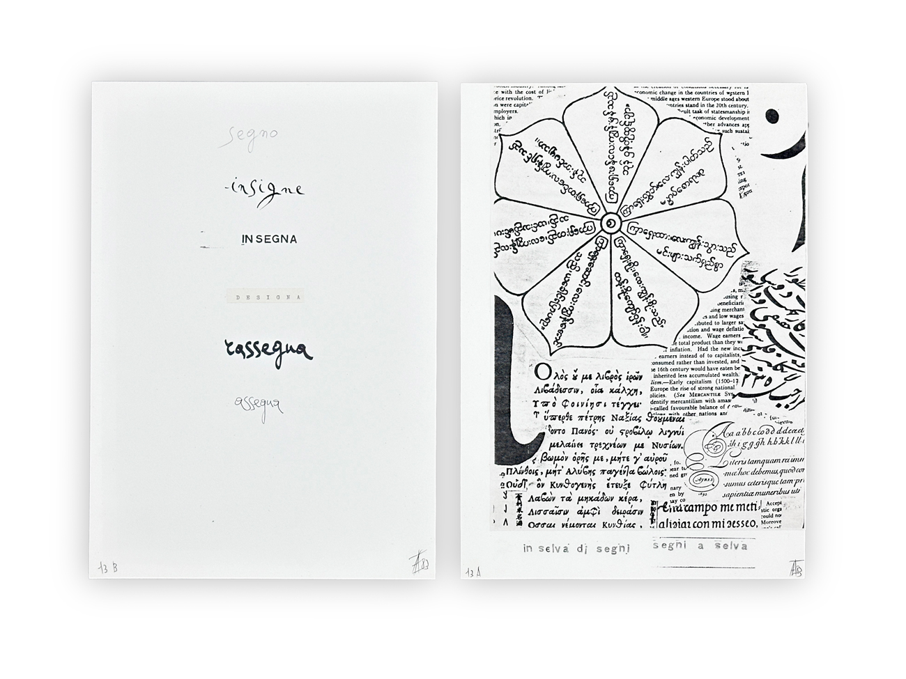 Cartella contenente 4 variazioni ideografiche originali, da intendersi opere uniche 1/1, di Arrigo Lora-Totino