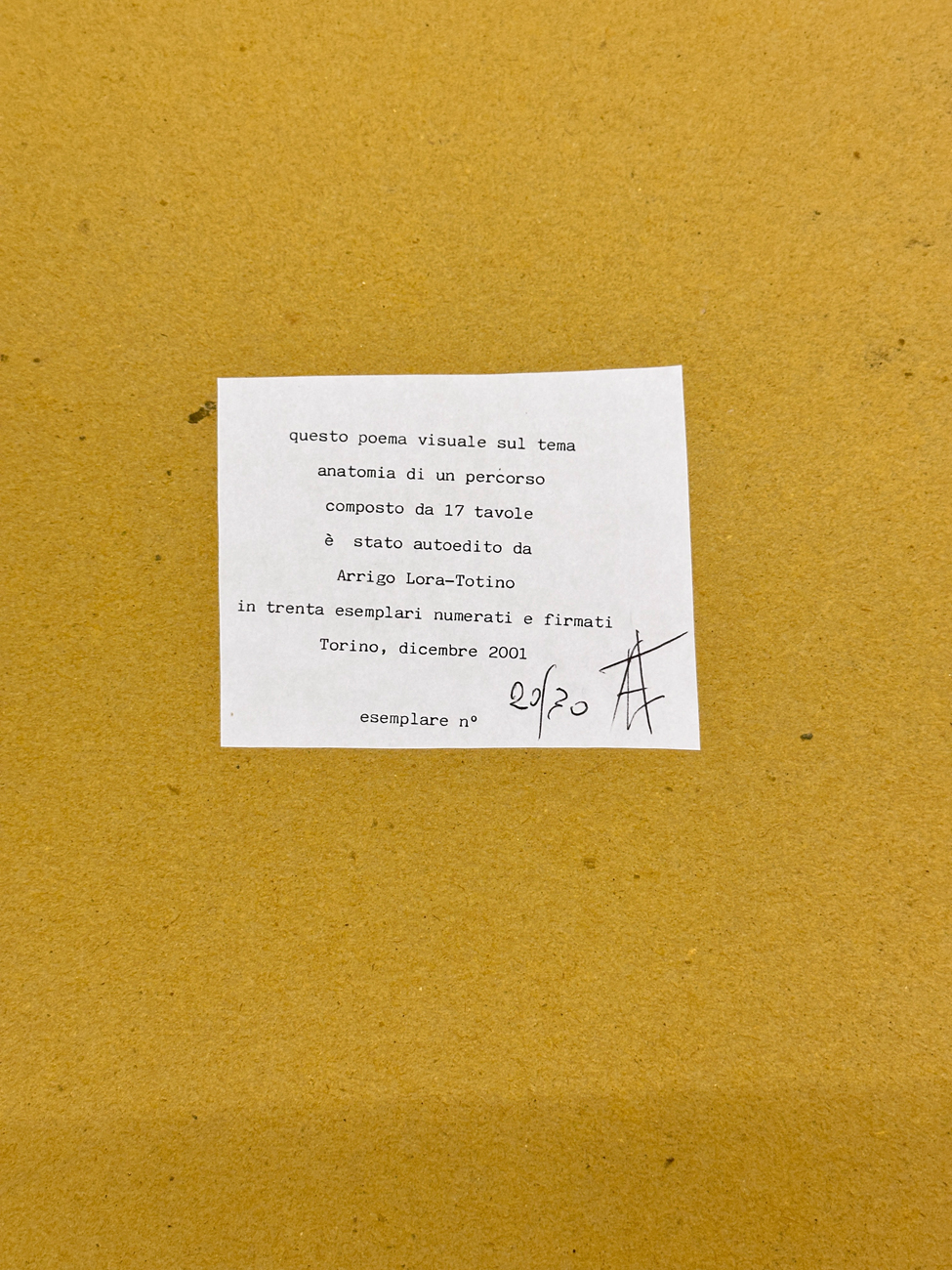 Edizione d'arte poema visuale autoedito da Arrigo Lora-Totino in 30 copie firmate e numerate (Esemplare 20/30)