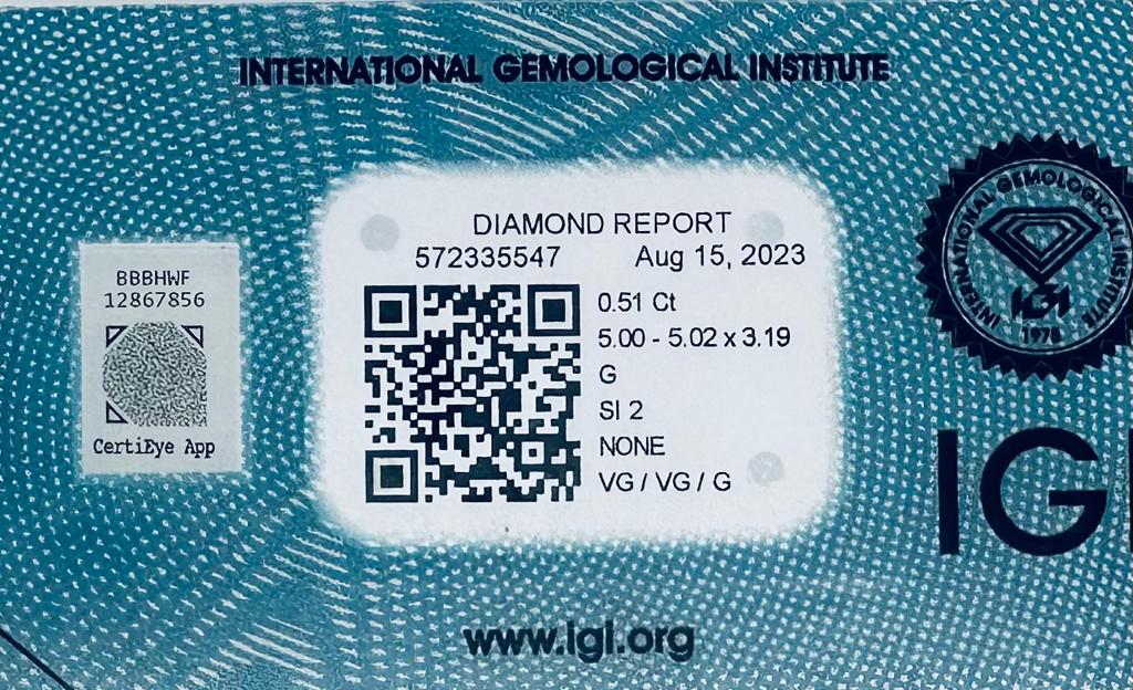 DIAMANTE 0,51 CT G - SI2 - IGI - SF30804