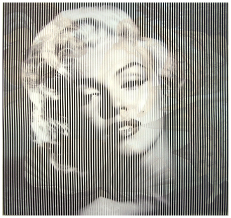 MALIPIERO Brescia 1934 Marilyn Monroe – Madonna della seggiola 2014 Collage su masonite 46,8 x 50,2. Firma, data, e titolo sul verso.