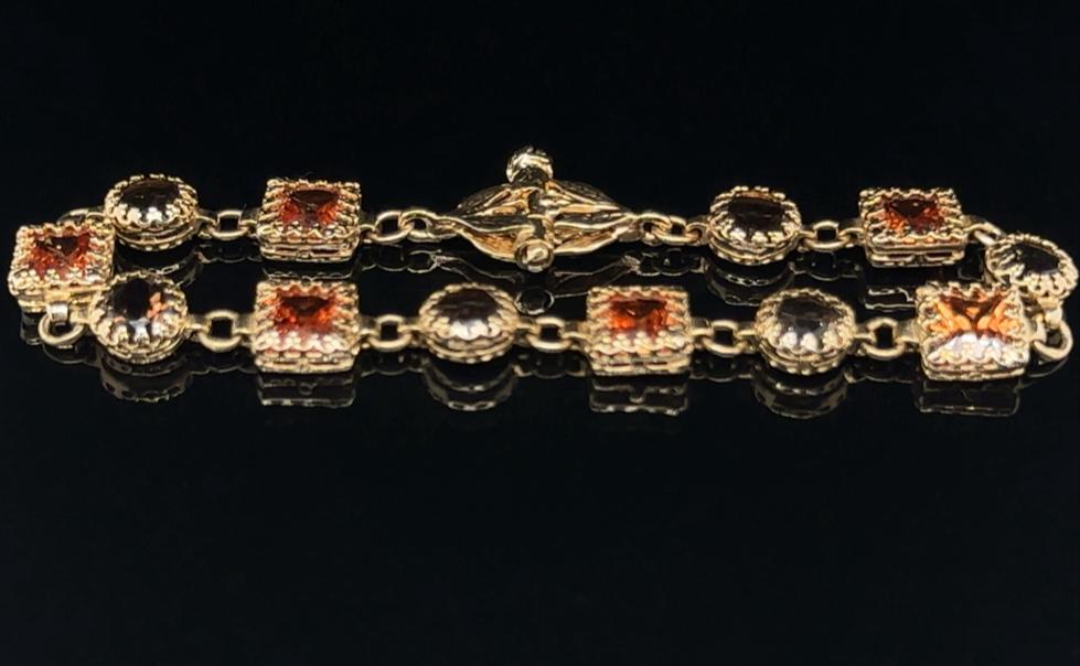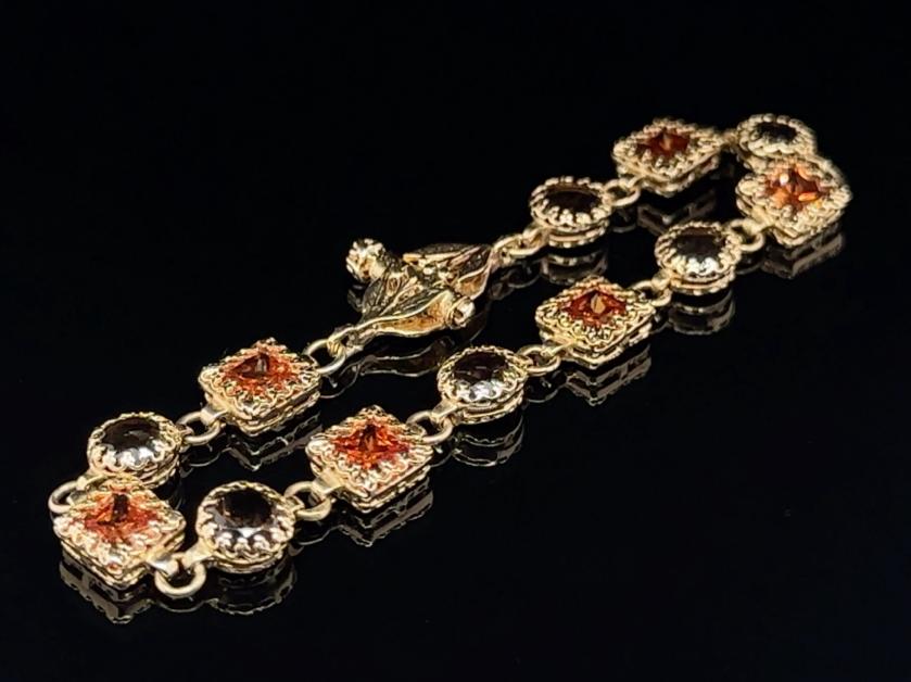 BRACCIALETTO IN ORO GIALLO 14K 11.24 GR CON QUARZO CITRINO 9.00 CARATI COLORE E QUARZO SMOKY 6.00 CARATI 17CM - CERTIFICATO GEMMOLOGICO MAROZ DIAMONDS LTD MEMBRO ISRAEL DIAMOND EXCHANGE - 24K40101
