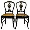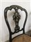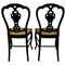 Dorsale a giorno e gambe anteriori mosse. Intarsi in madreperla e motivi floreali dipinti. Seduta in cannetè.