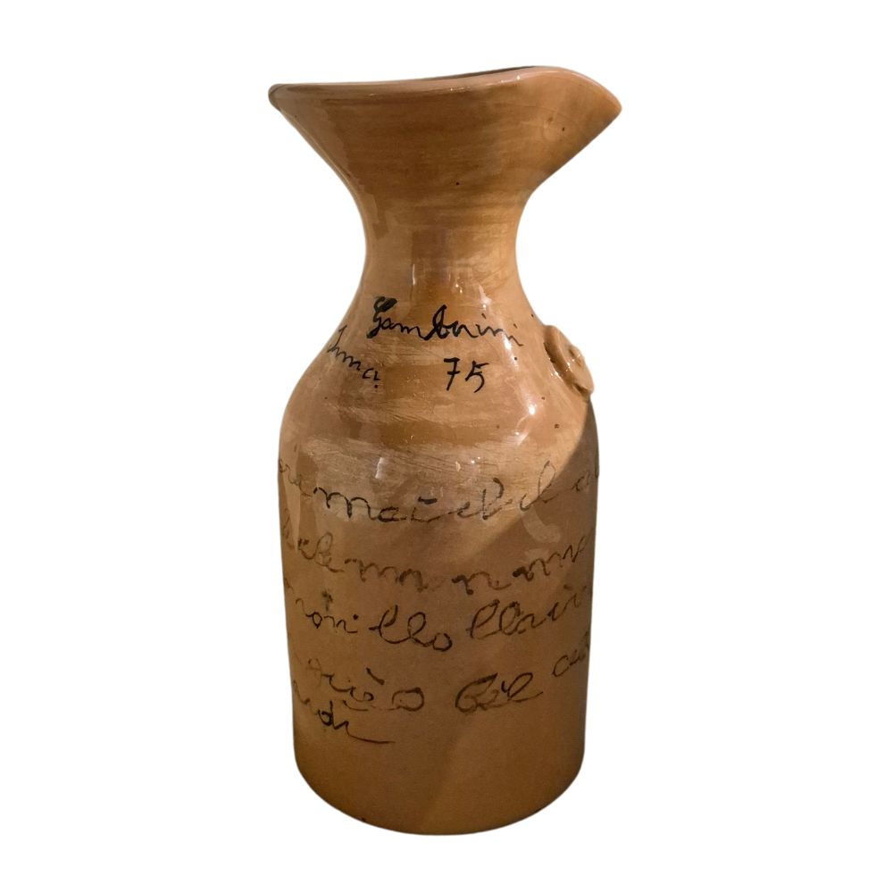 Terracotta smaltata. Esemplare 25/36. Sul corpo del vaso animali dipinti e scritte. Firmata e datata Pietro Ghizzardi 1975.