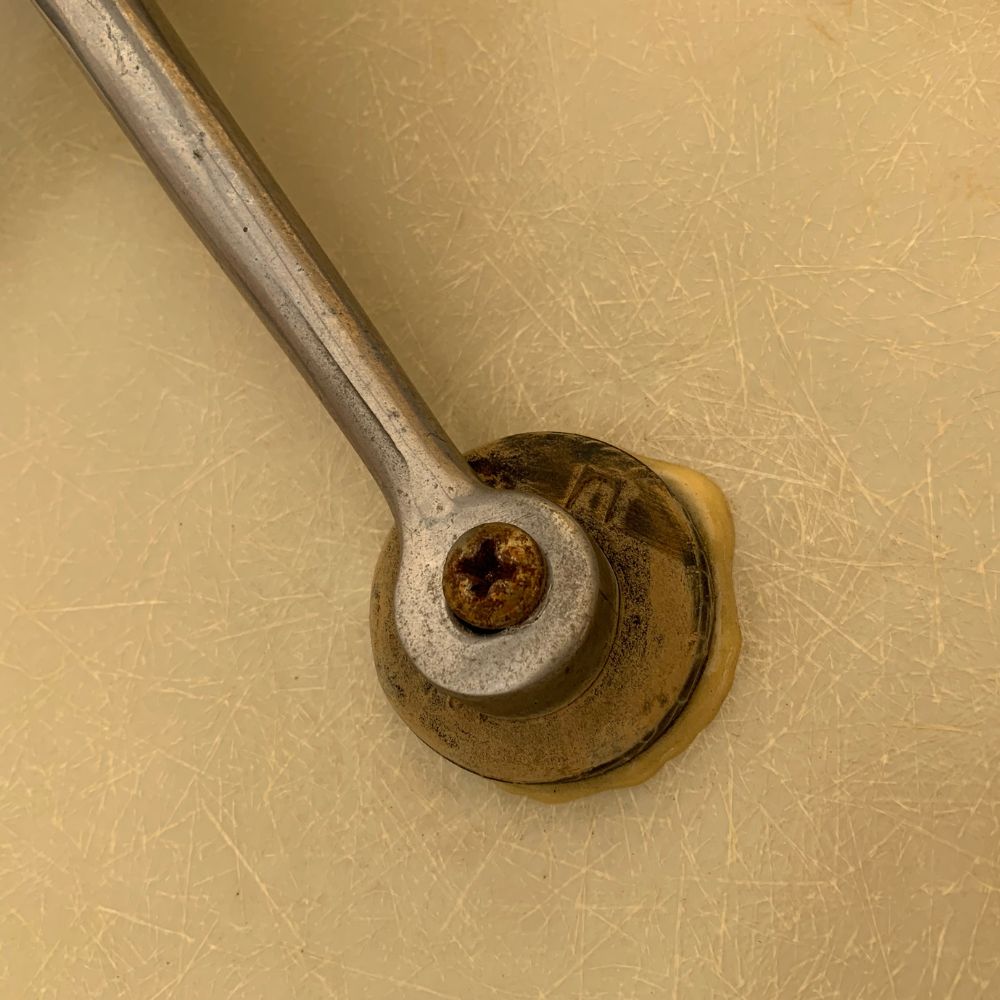 Rivestimento in pelle nera con bordo color crema. Struttura in alluminio e vetroresina. Logo del produttore.