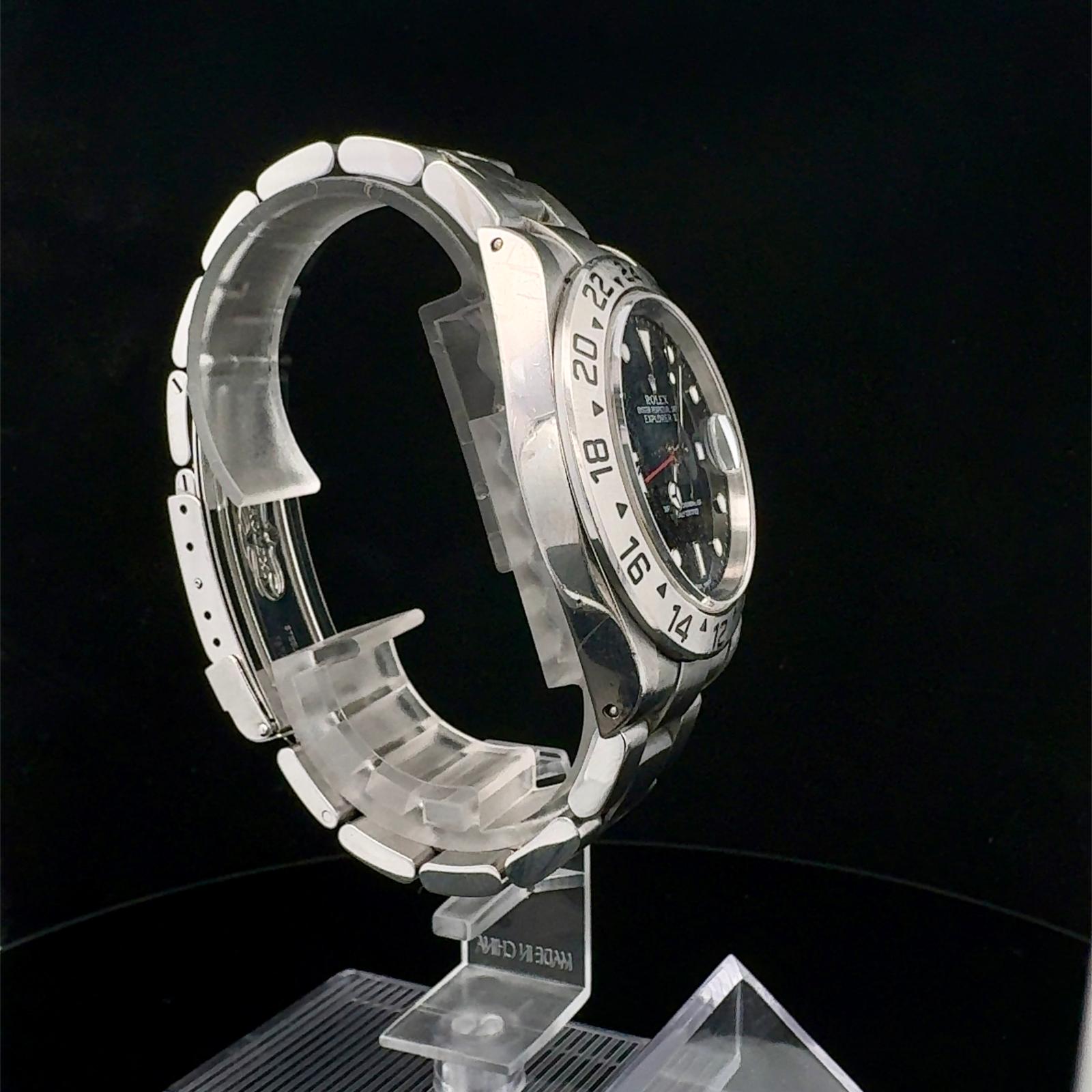 Marca Rolex Modello (Orologio) Explorer II Numero di referenza 16570 Carica Automatico Materiale della cassa Acciaio Materiale cinturino Acciaio Anno di produzione 2002 Condizione Usato (Ottimo) L'articolo presenta segni di usura lievi, come ad esempio graffi leggeri, ma non percepibili al tatto, no box Cassa Materiale della cassa Acciaio Diametro 40 mm Impermeabile 10 ATM Materiale lunetta Acciaio Vetro Vetro zaffiro Quadrante Nero Numeri sul quadrante Senza numeri Cinturino Materiale cinturino Acciaio Colore cinturino Acciaio Chiusura Déployante Materiale chiusura Acciaio