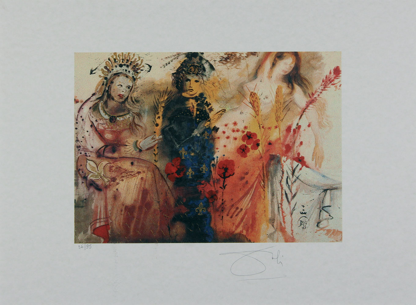 Dalì Salvador Las cuatro Estaciones litografia ad 8 colori, cm. 49,8x67,5 (lastra cm. 29,5x41,5), es. 36//95 firmata in basso a destra, timbro a secco in basso a sinistra, etichetta della Edición Gaceta Española de Arte Contemporáneo di Madrid al retro