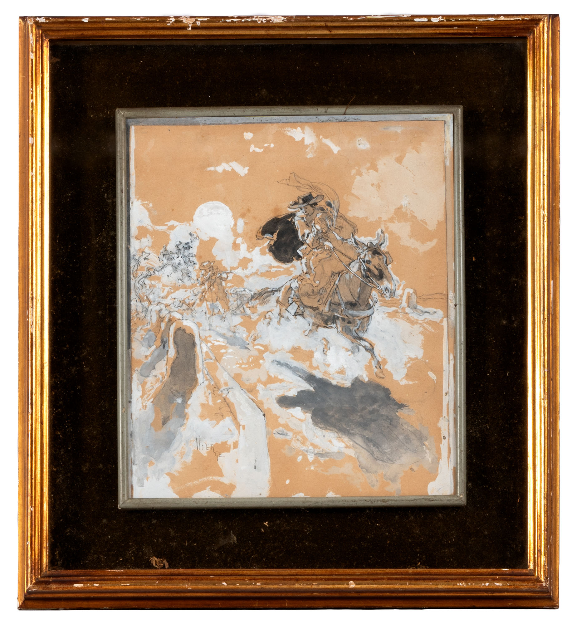 DANIEL VIERGE URRABIETA(1851 - 1904)Senza titoloTecnica mista su cartoncino24,5 x 21,5 cmFirmata in basso a sinistra