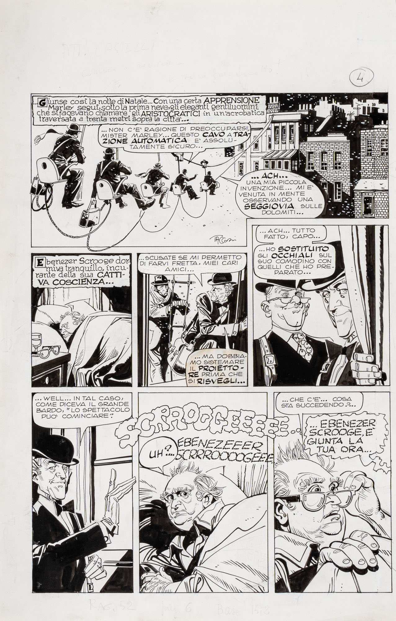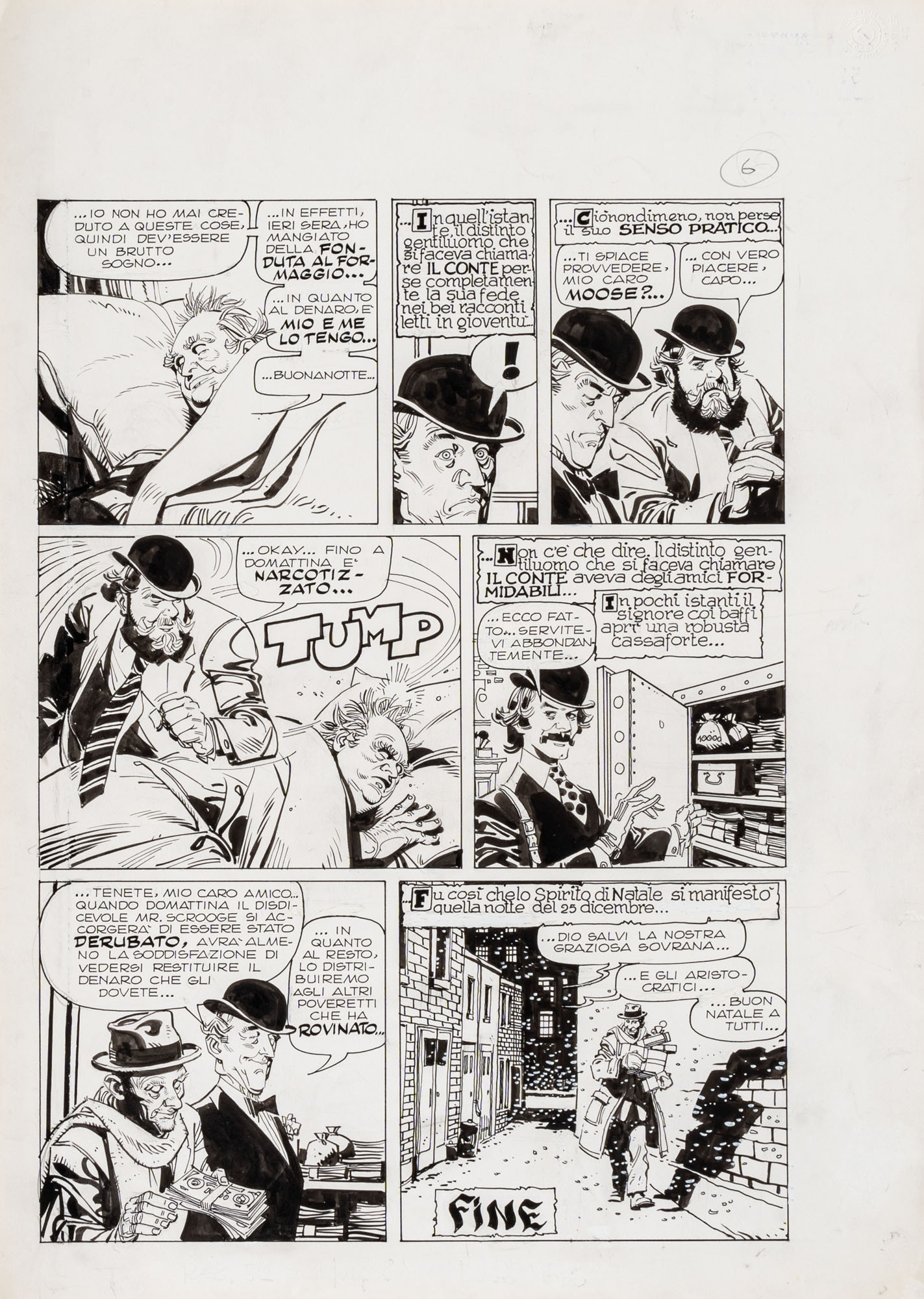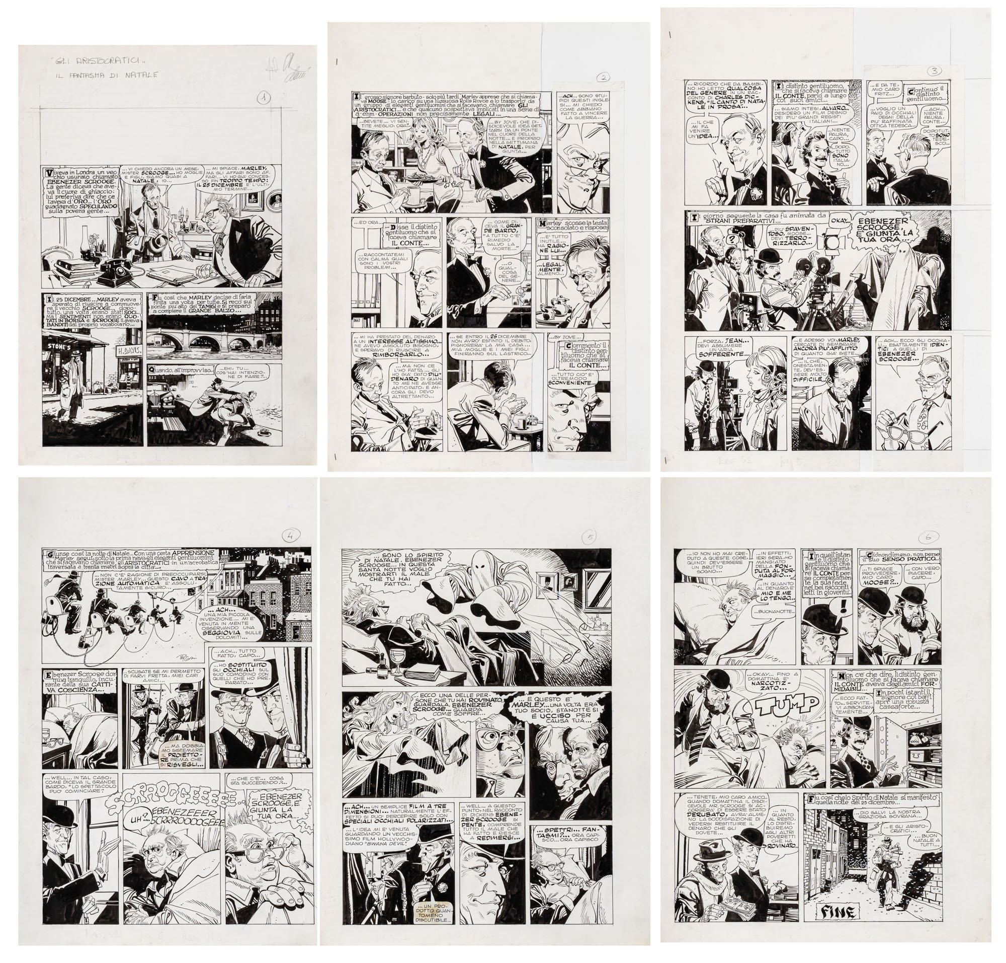 FERDINANDO TACCONI(1922 - 2006)Gli aristocratici - Il fantasma di Natale - Storia completa in 6 tavole1975China su cartaOgni tavola misura 51 x 36,5 cmTimbro Corriere Ragazzi sulla prima e sull'ultima tavola