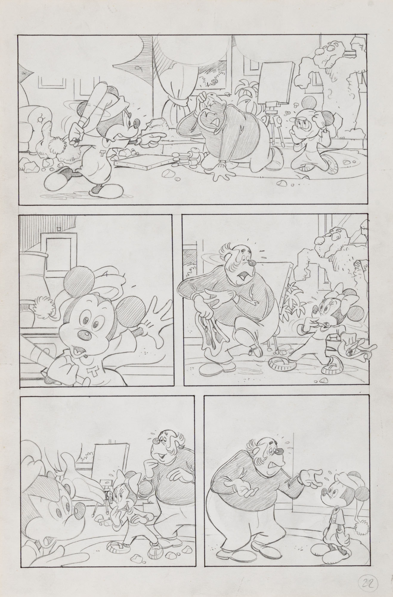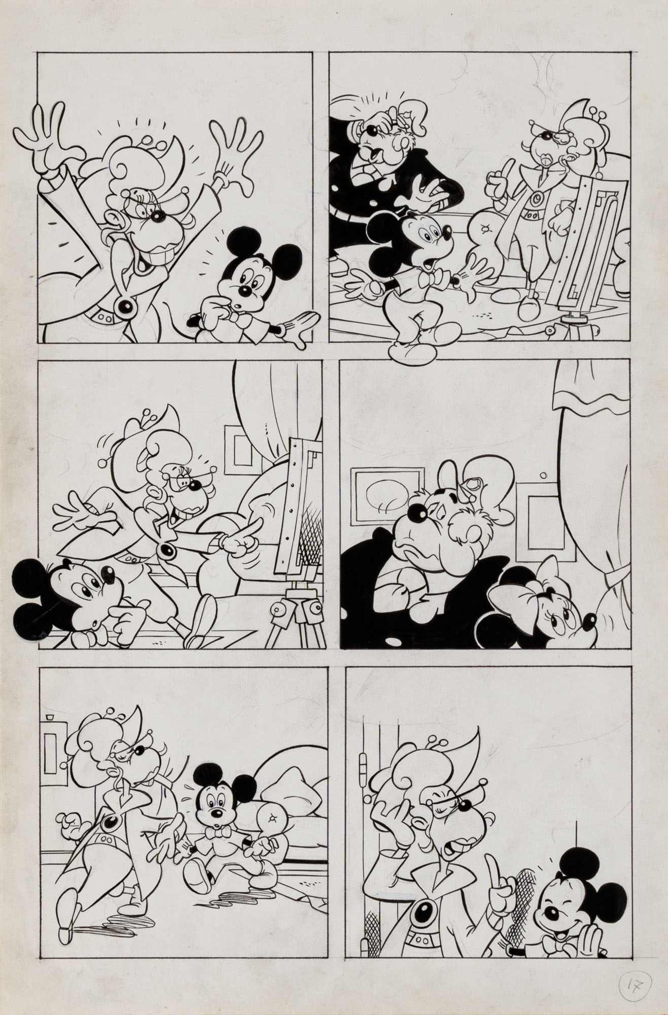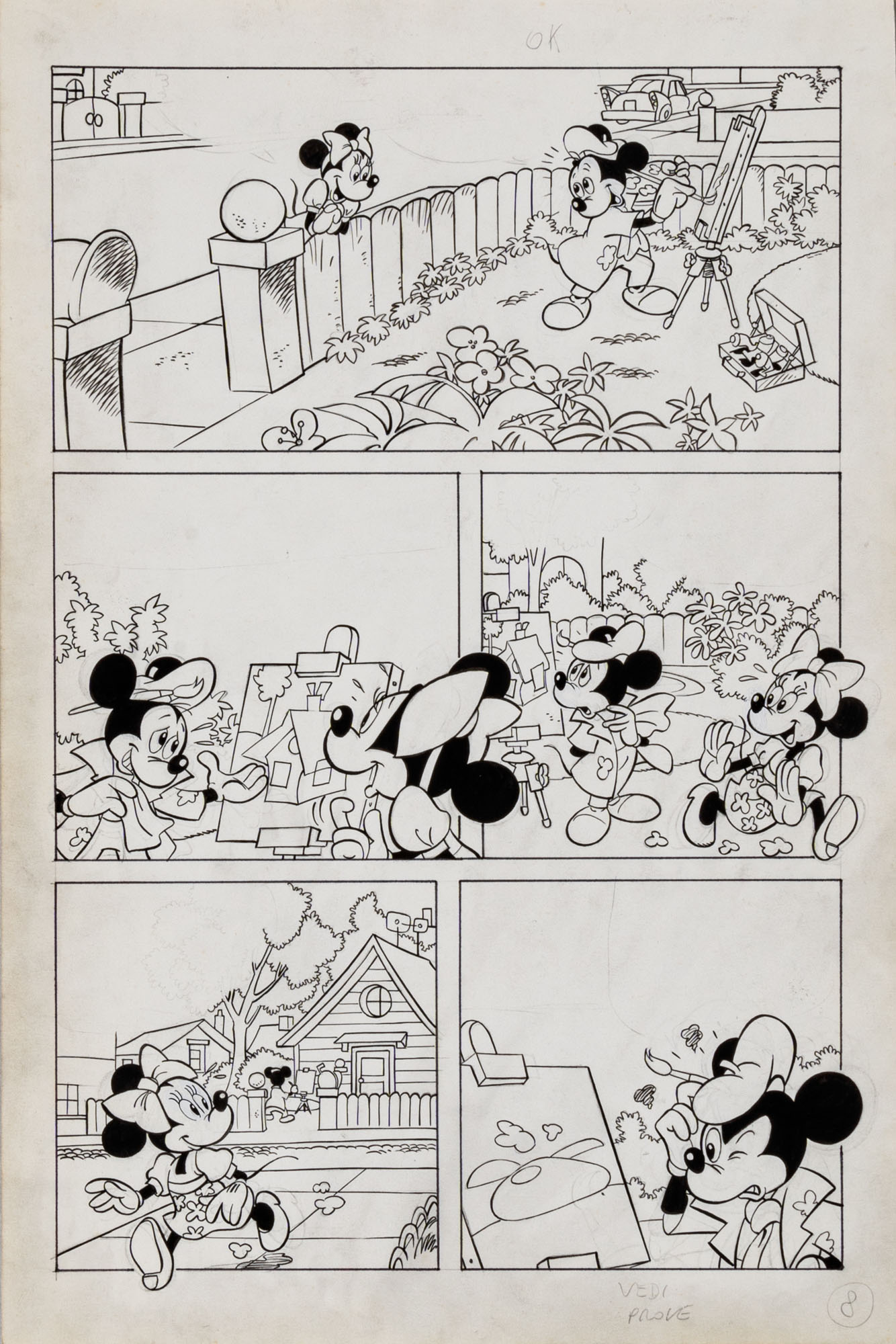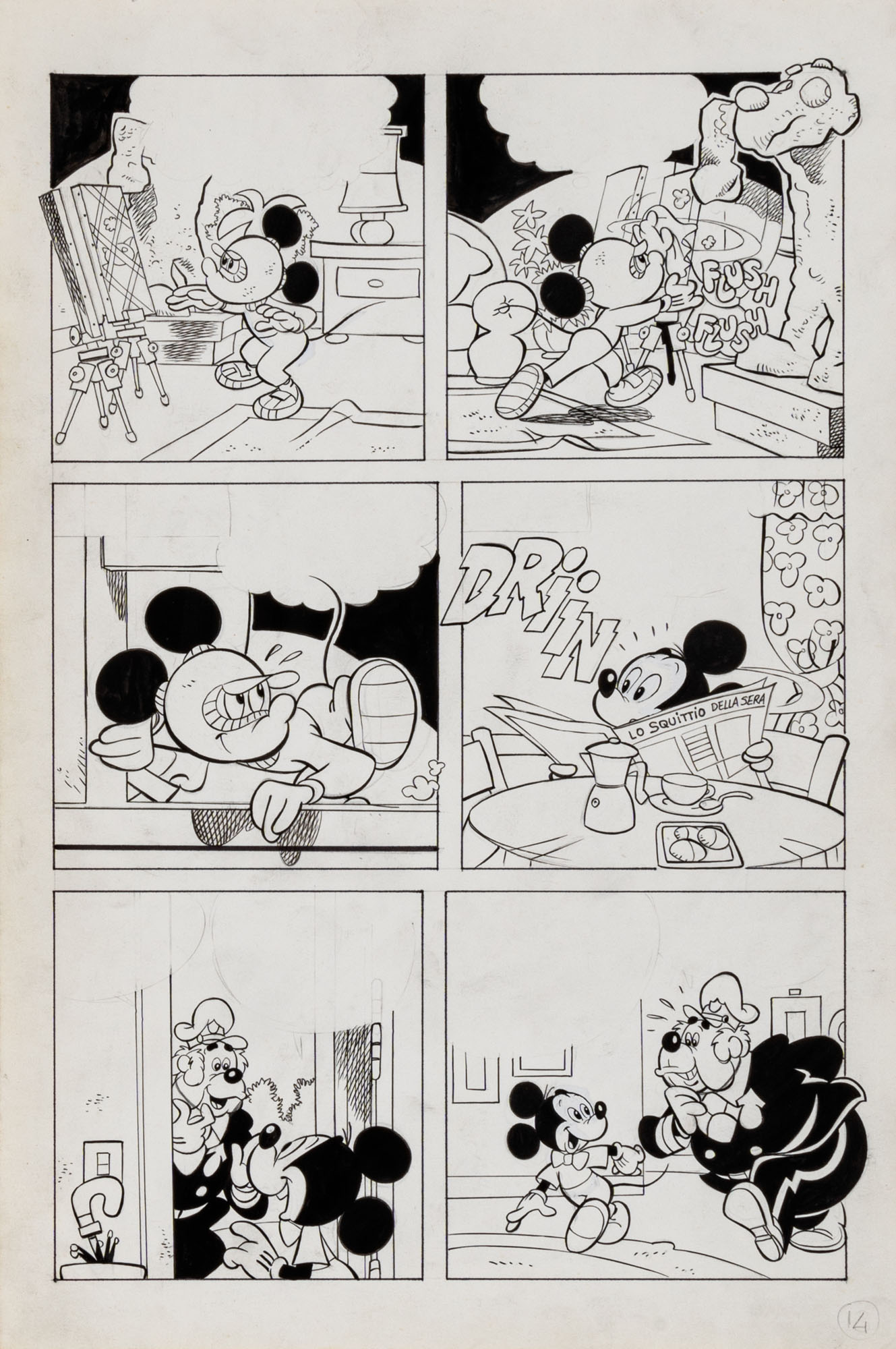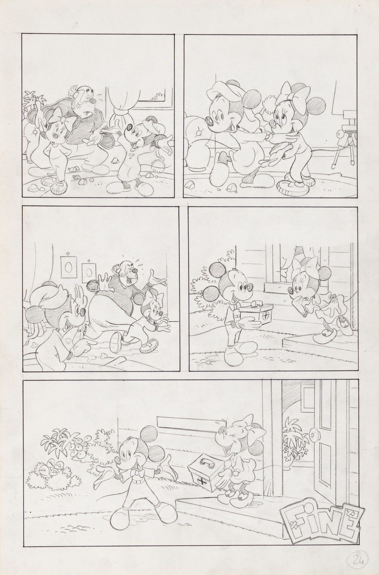 MONTANARI GIUSEPPE, PICCOLI CLAUDIOTopolino e l'hobby obbligatorio, storia inedita in 40 tavole1993China su cartaOgni tavola misura 36 x 24 cmLa tavola n. 4 è mancante, numerose pagine alternative e 27 prove di stampaQuesta storia risulta inedita in quanto pubblicata su Topolino libretto 1938, ma disegnata da Sandro Del Conte