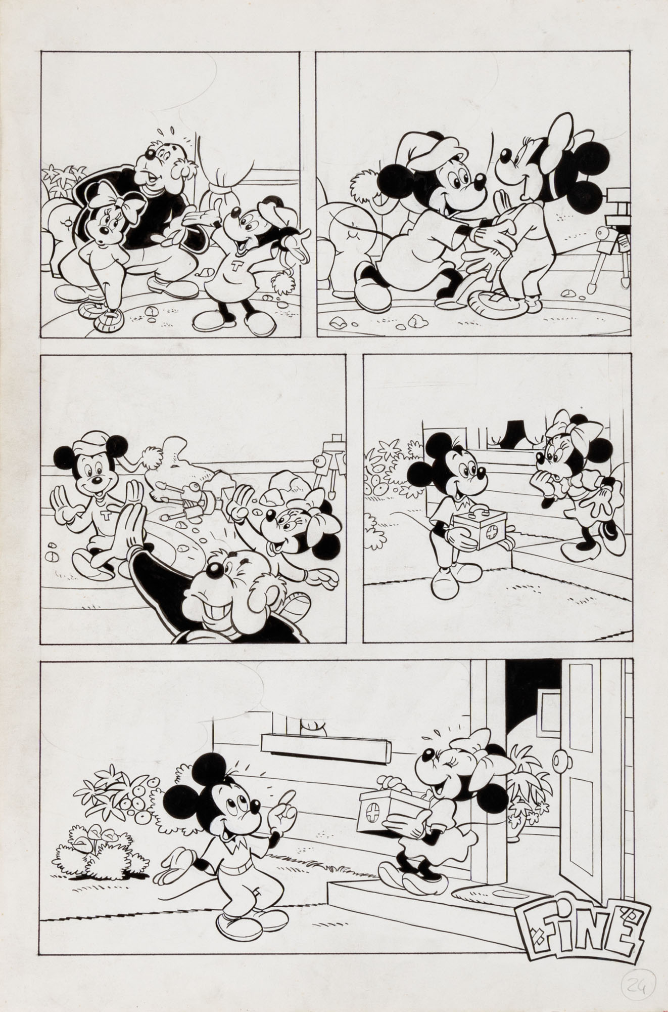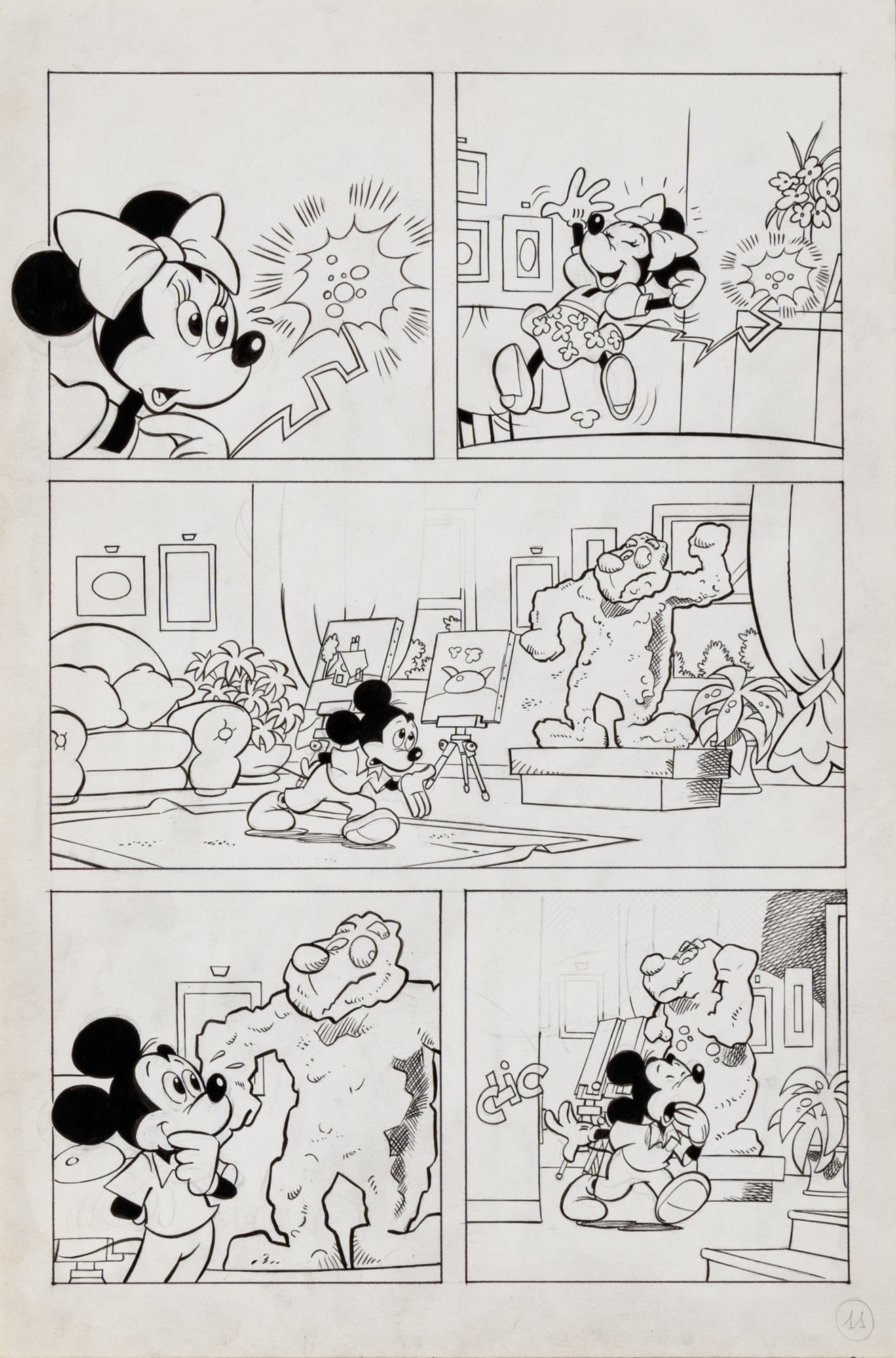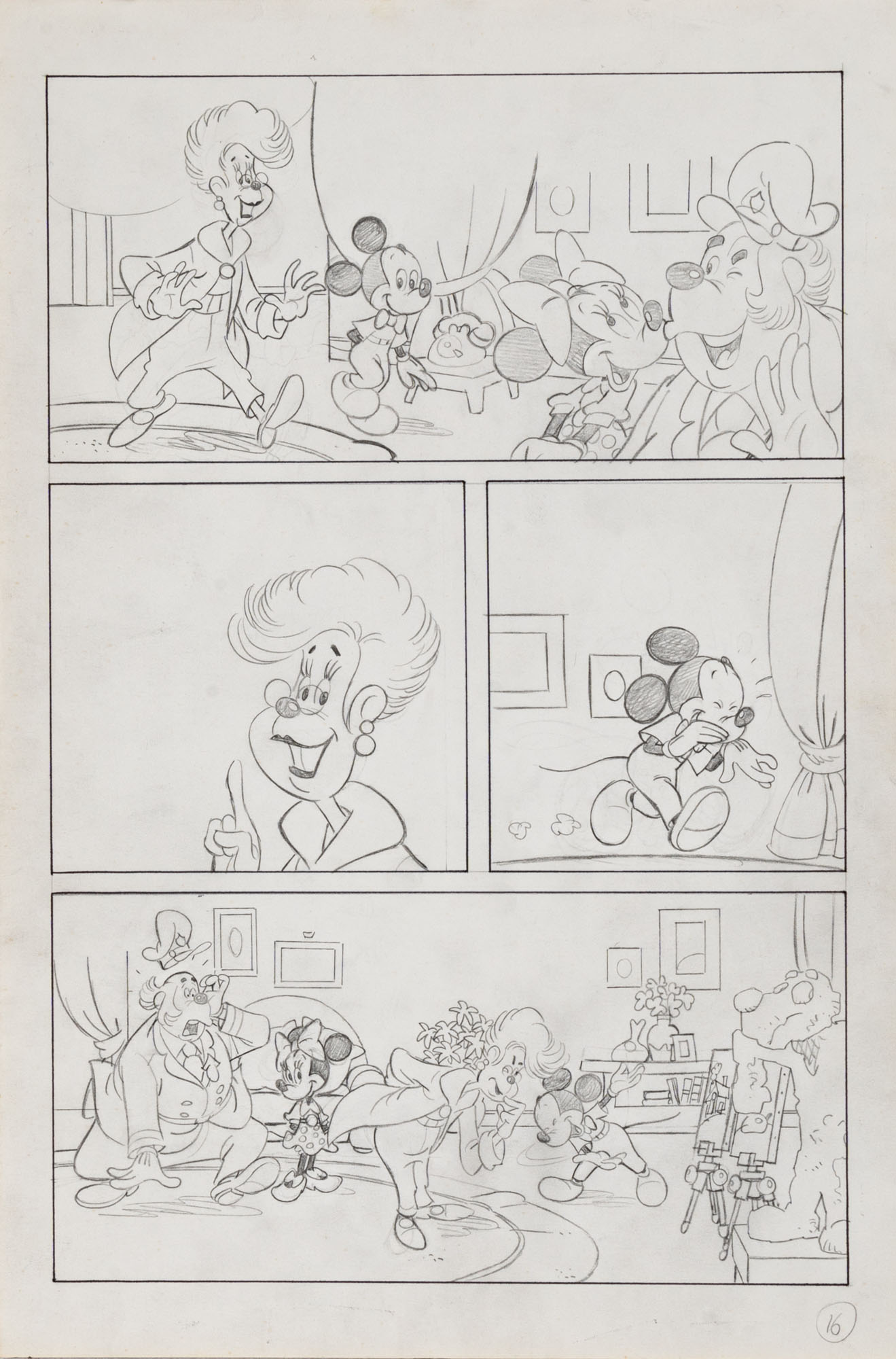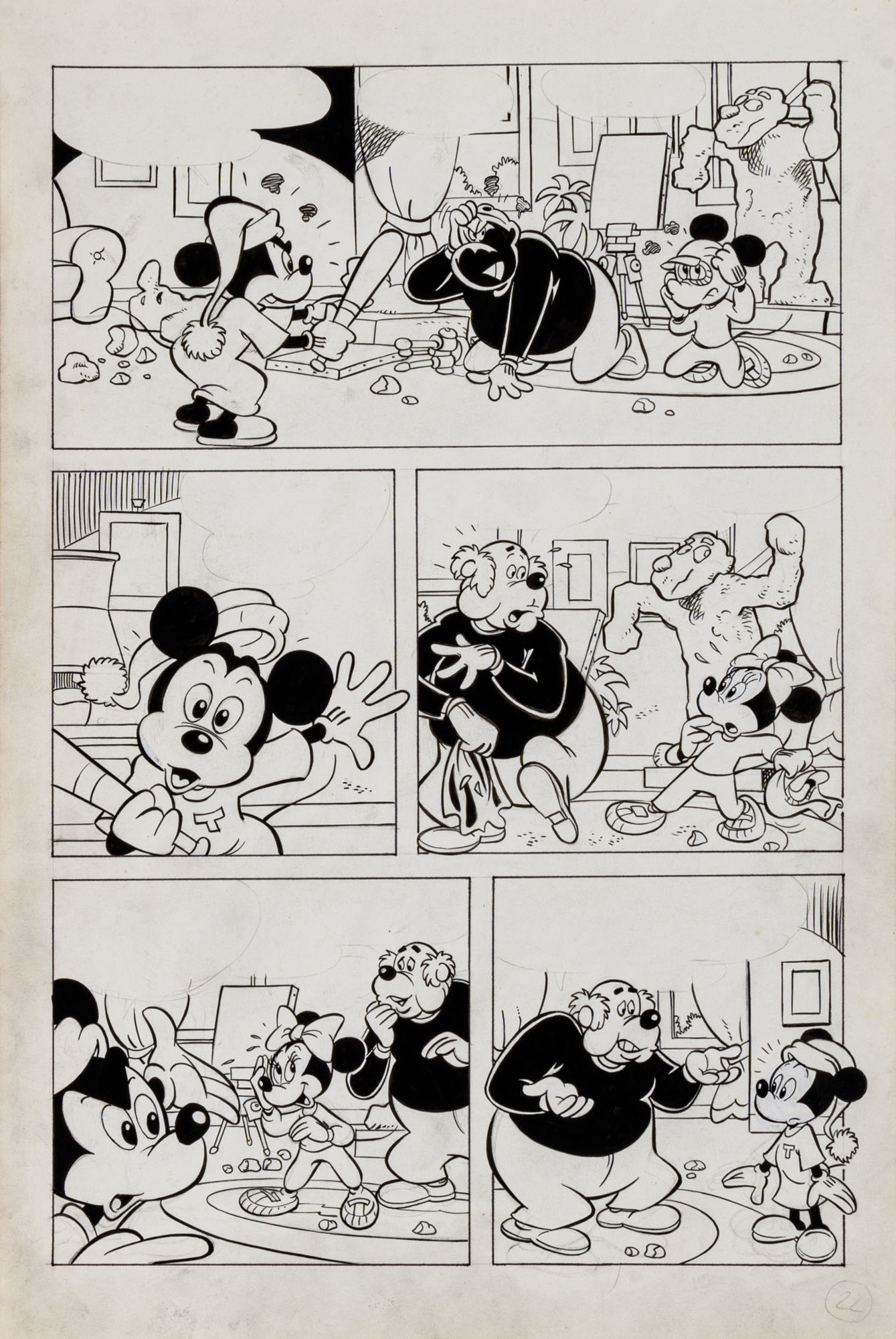 MONTANARI GIUSEPPE, PICCOLI CLAUDIOTopolino e l'hobby obbligatorio, storia inedita in 40 tavole1993China su cartaOgni tavola misura 36 x 24 cmLa tavola n. 4 è mancante, numerose pagine alternative e 27 prove di stampaQuesta storia risulta inedita in quanto pubblicata su Topolino libretto 1938, ma disegnata da Sandro Del Conte