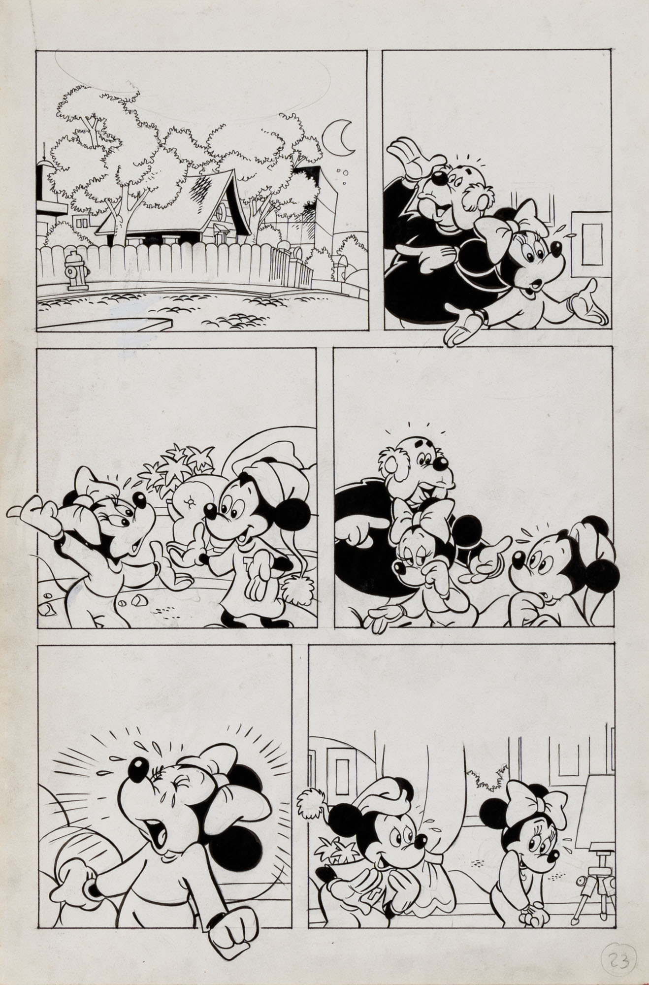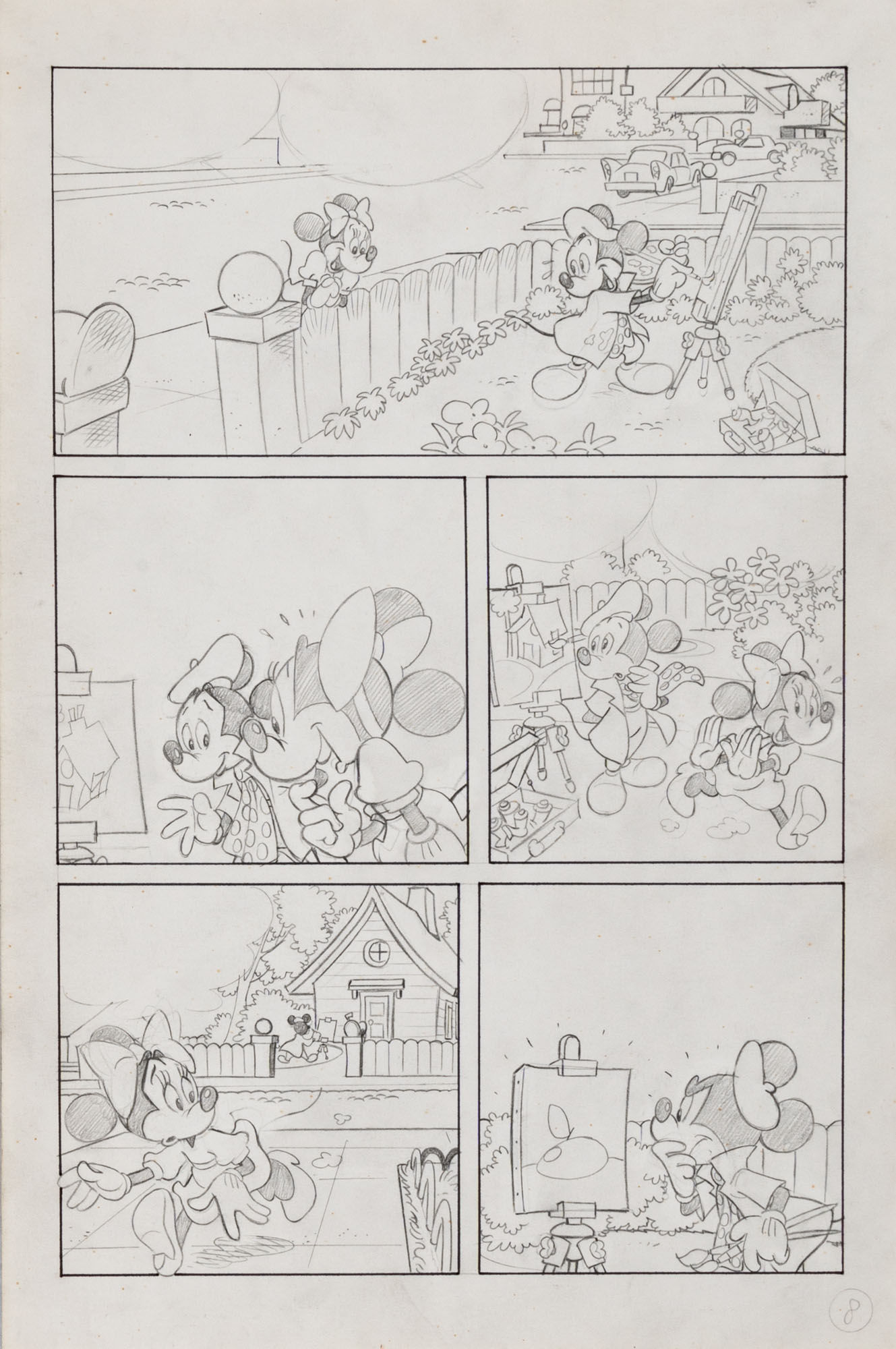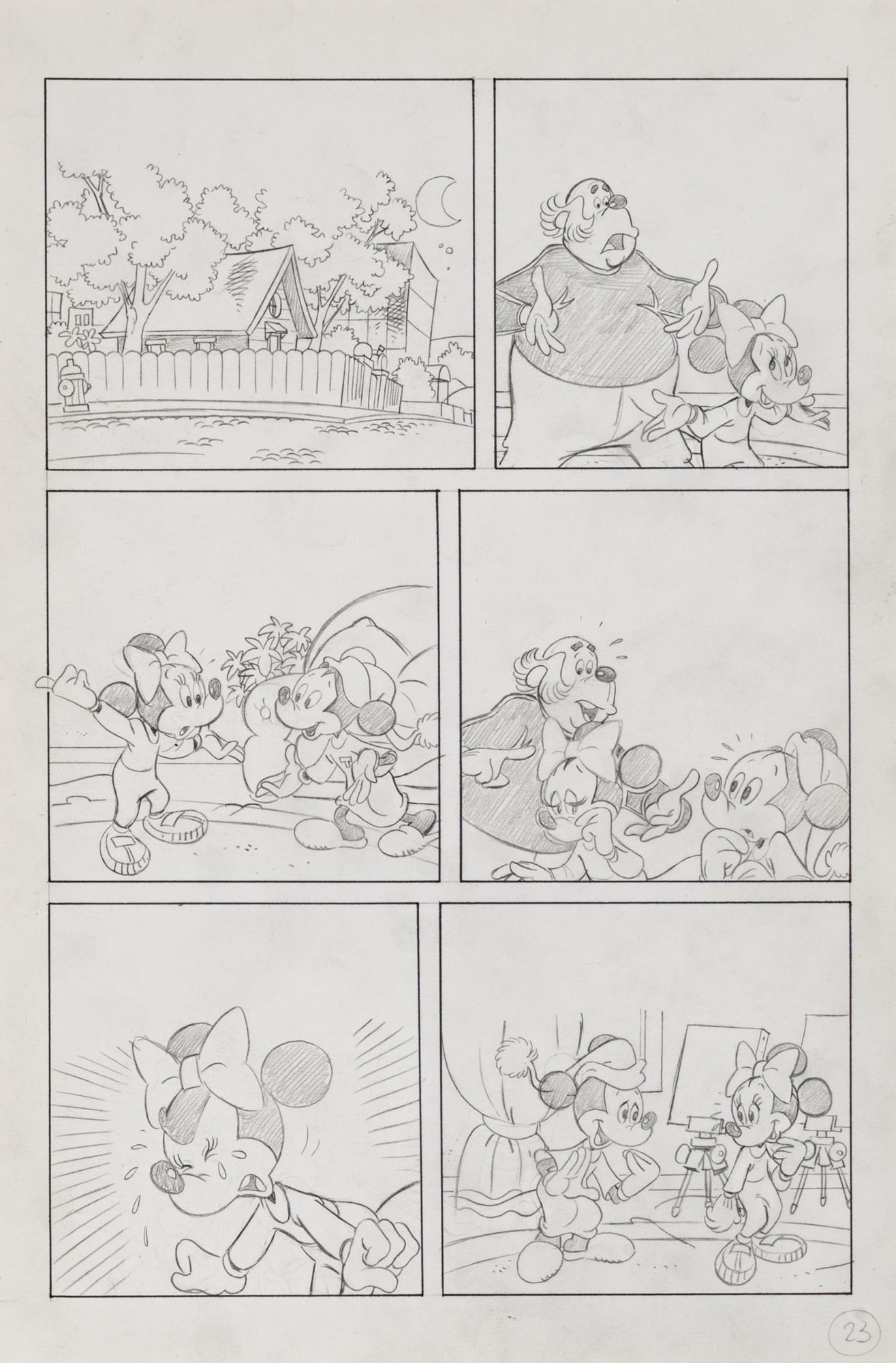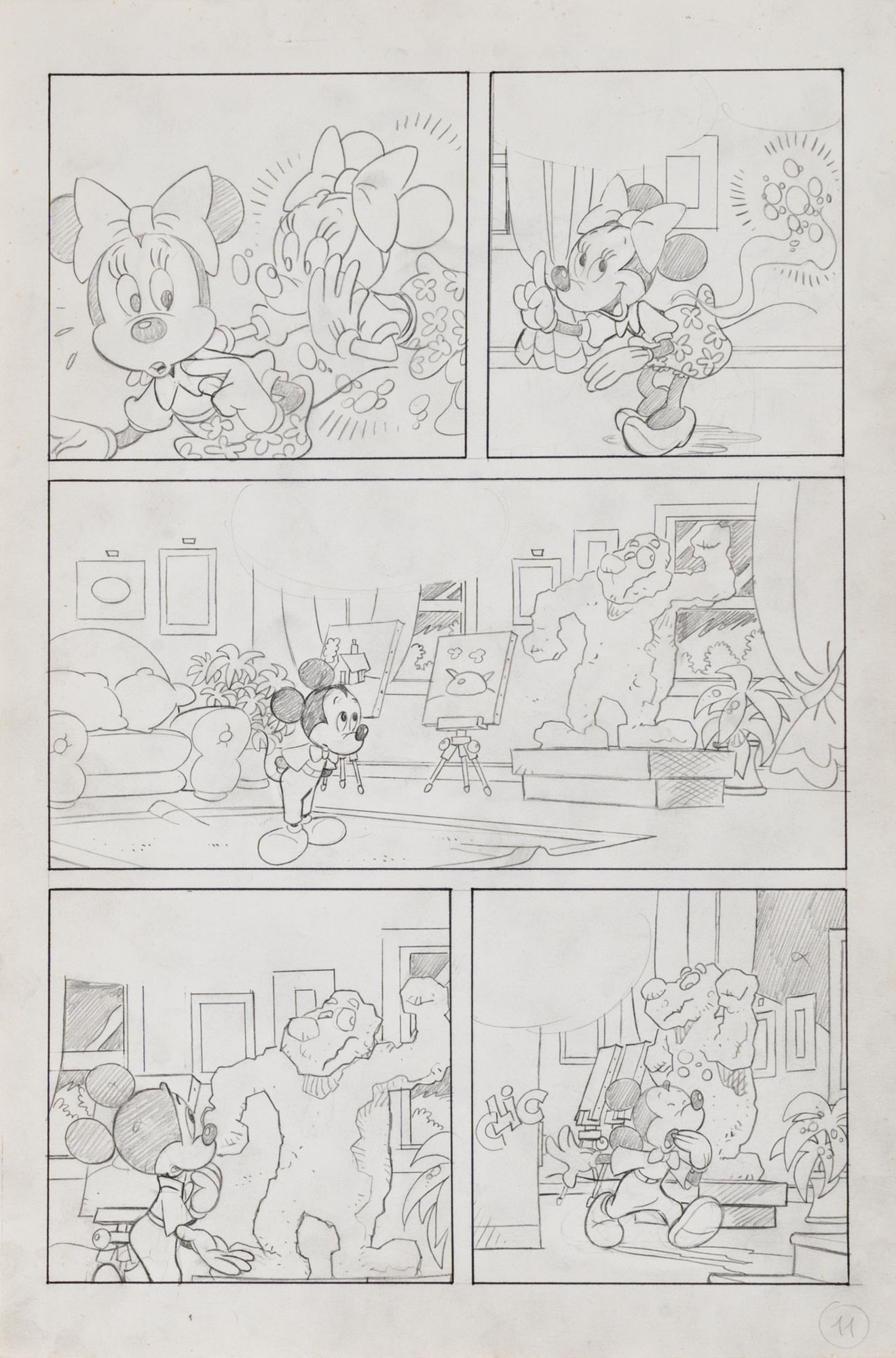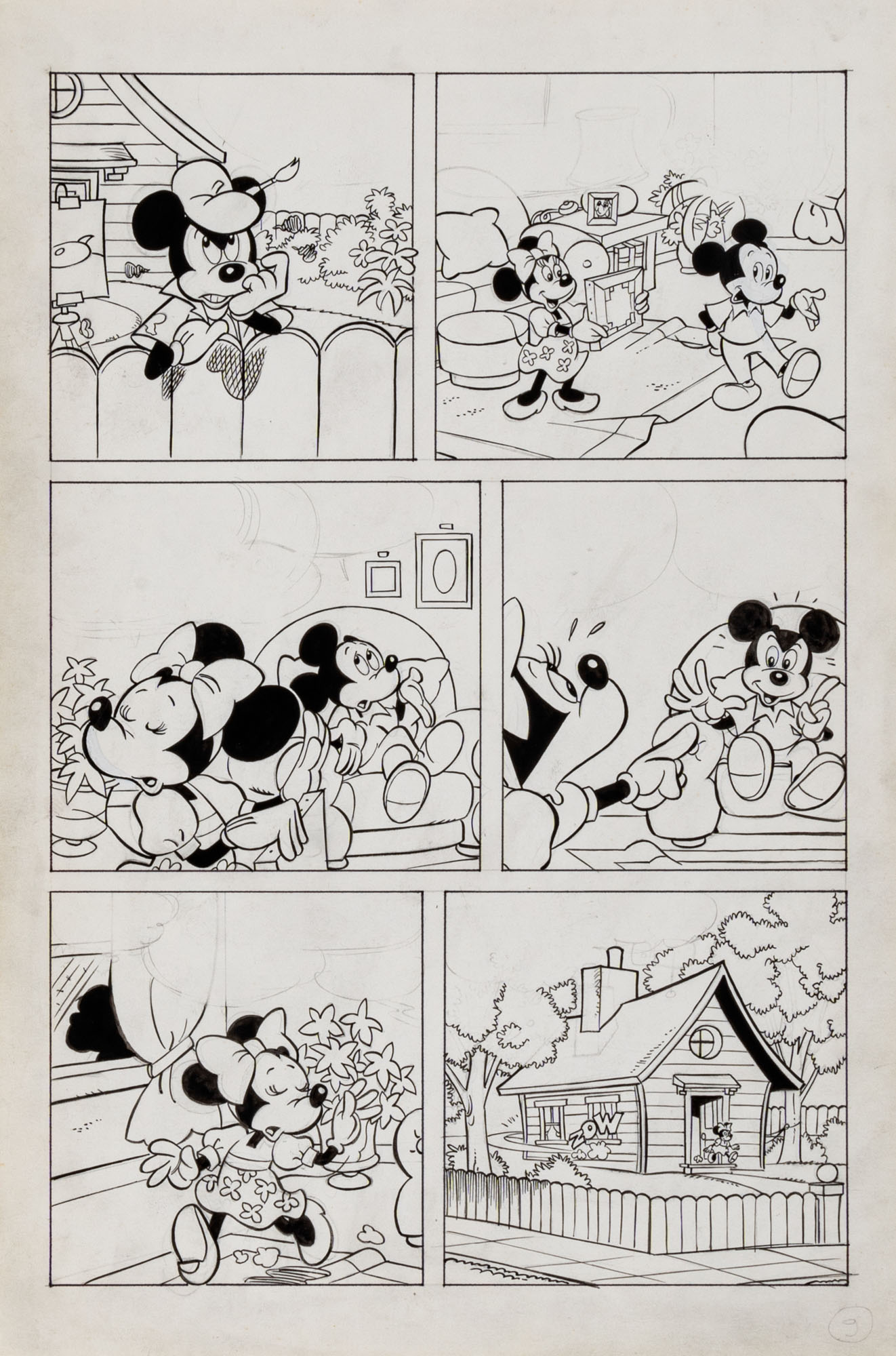 MONTANARI GIUSEPPE, PICCOLI CLAUDIOTopolino e l'hobby obbligatorio, storia inedita in 40 tavole1993China su cartaOgni tavola misura 36 x 24 cmLa tavola n. 4 è mancante, numerose pagine alternative e 27 prove di stampaQuesta storia risulta inedita in quanto pubblicata su Topolino libretto 1938, ma disegnata da Sandro Del Conte