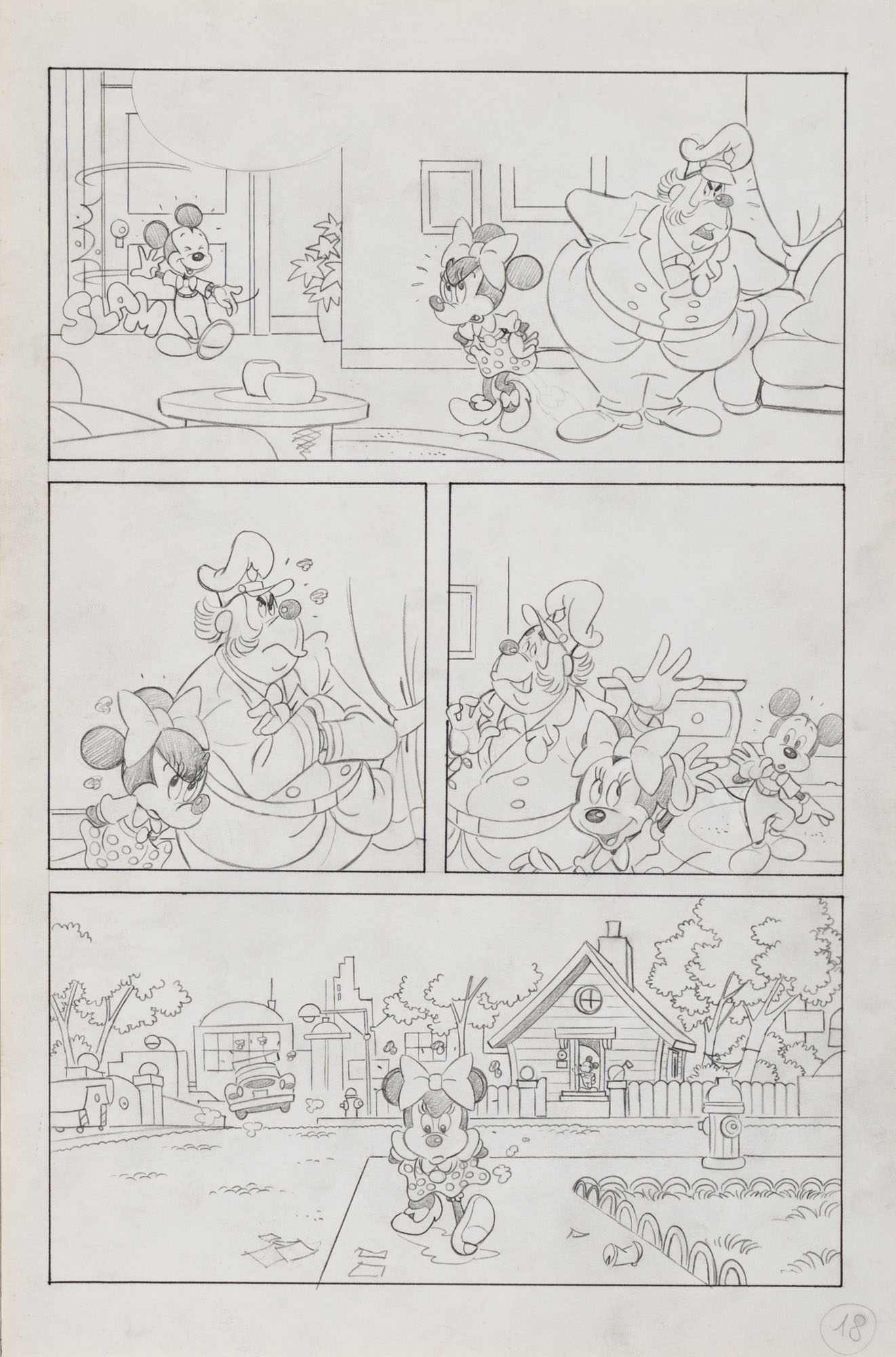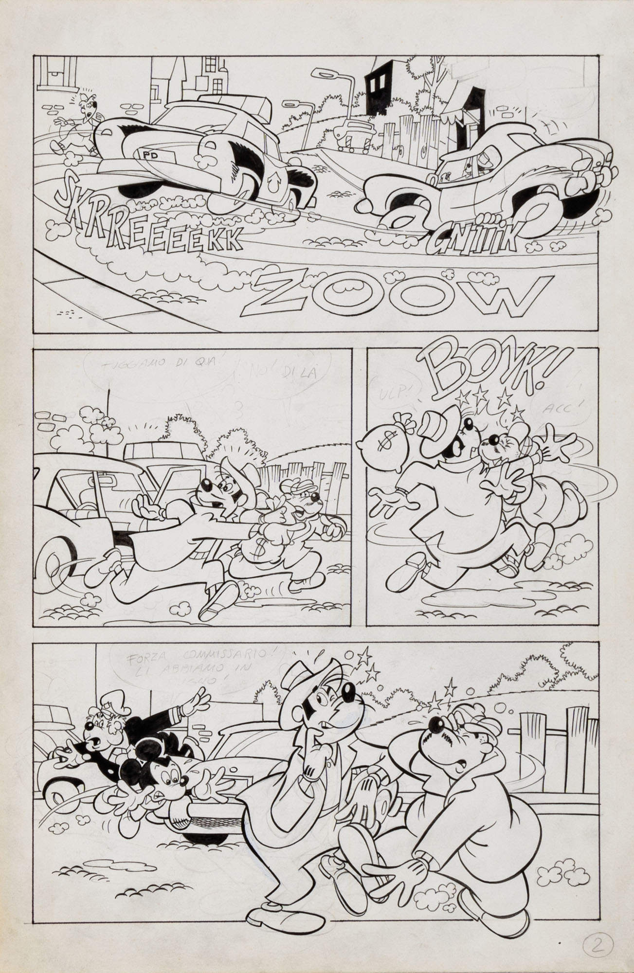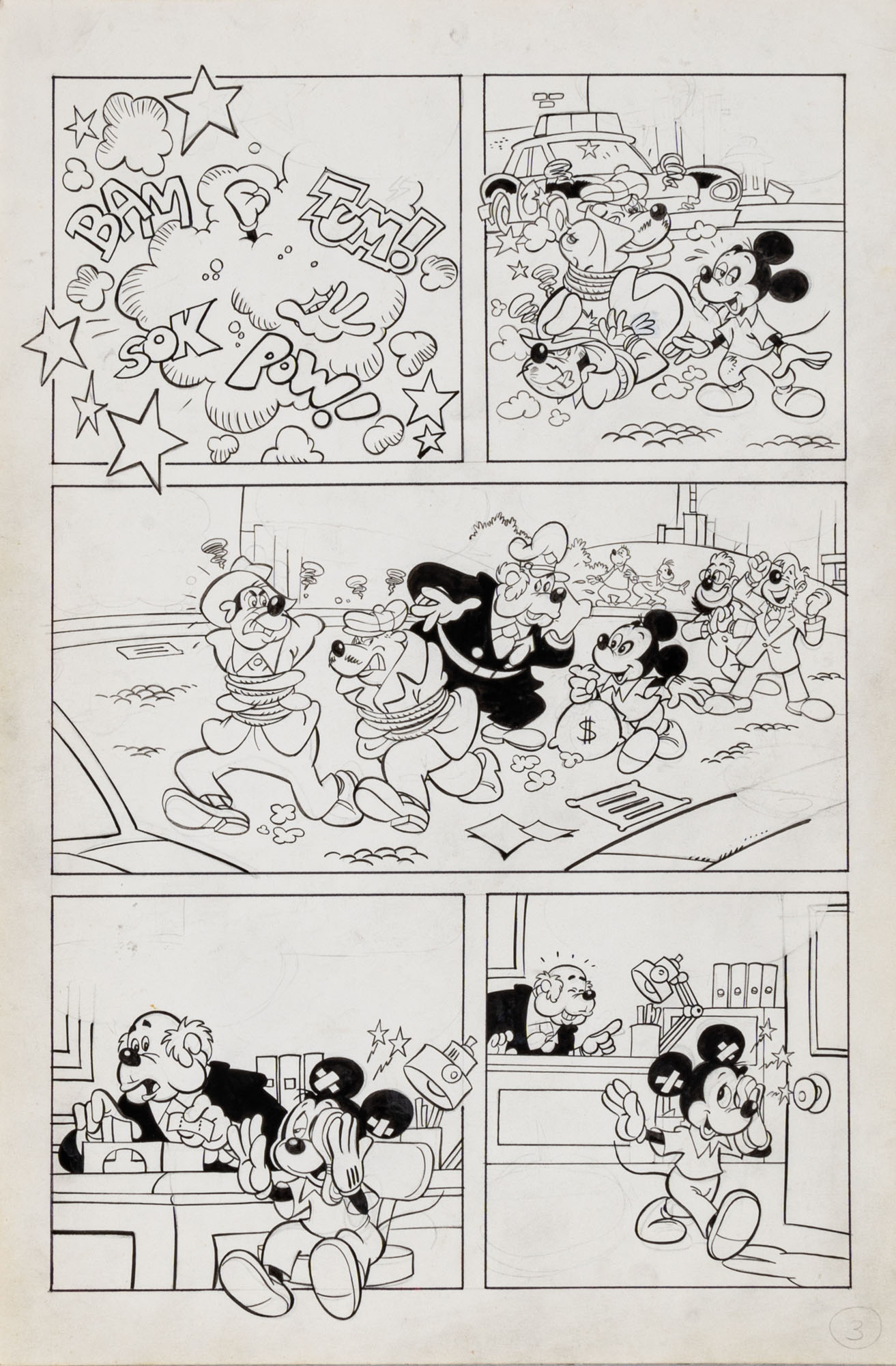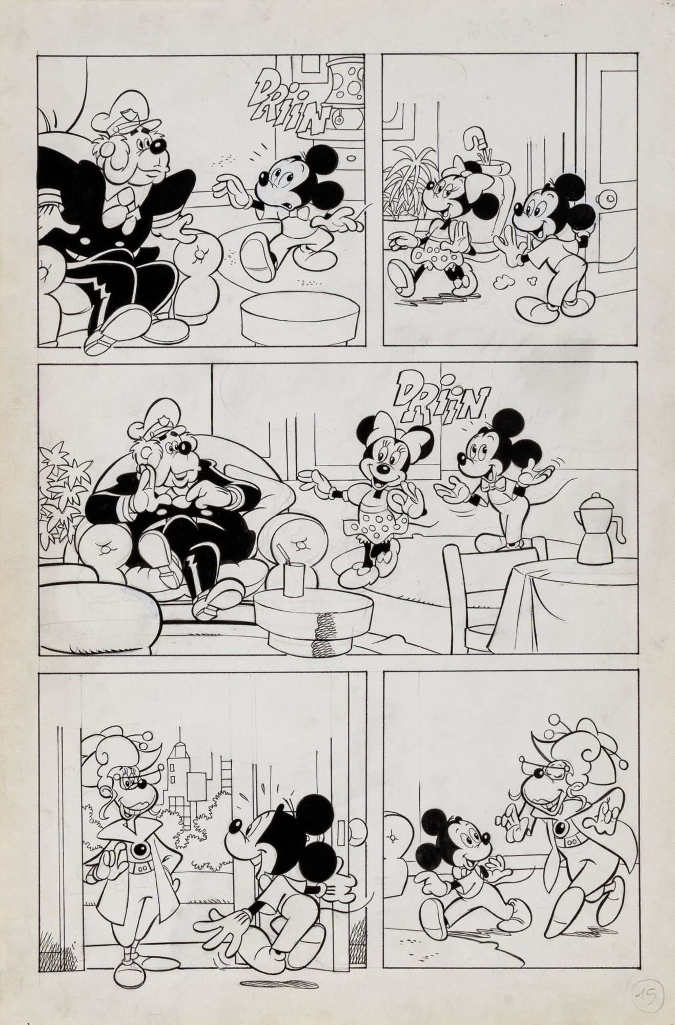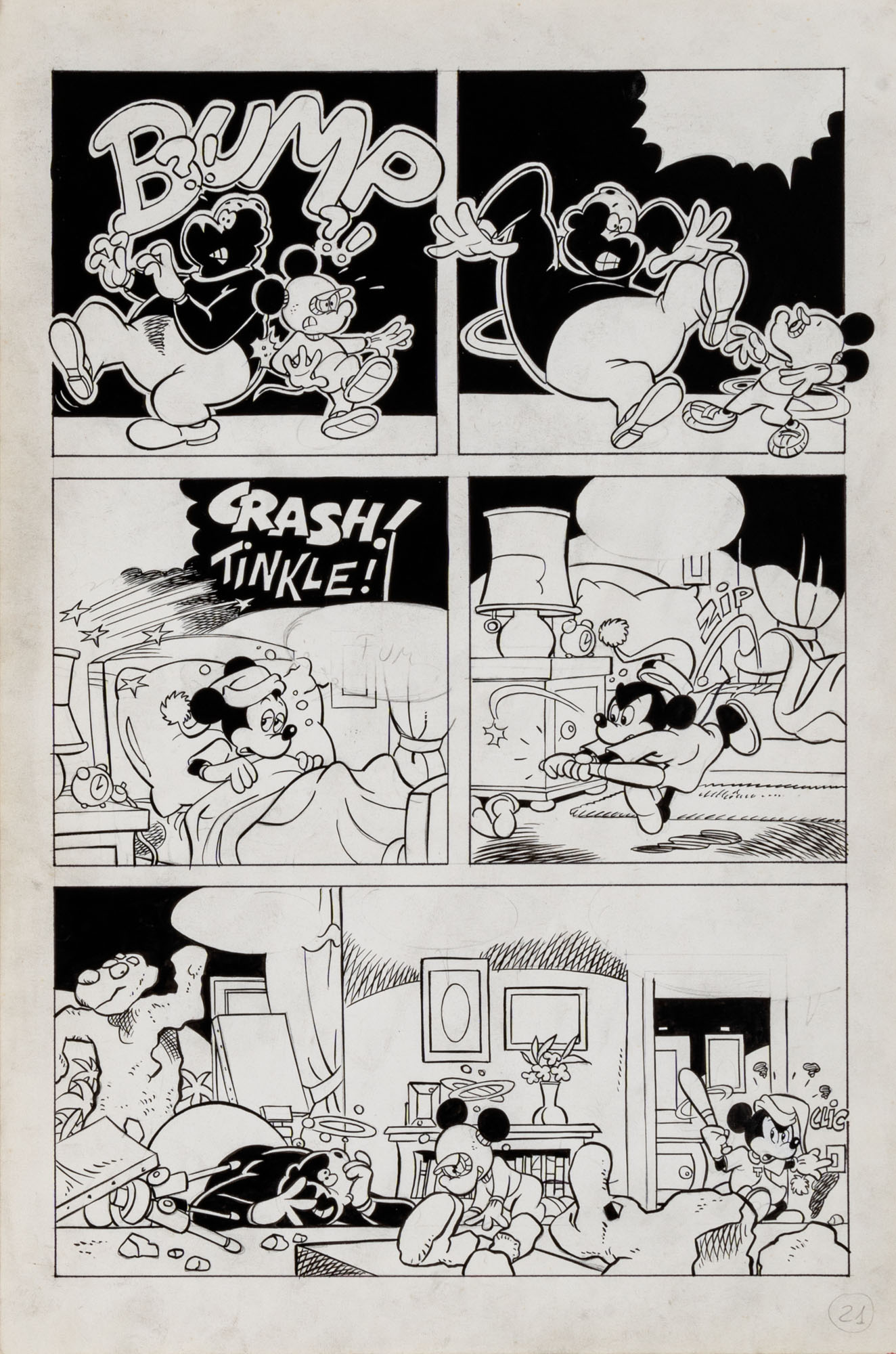MONTANARI GIUSEPPE, PICCOLI CLAUDIOTopolino e l'hobby obbligatorio, storia inedita in 40 tavole1993China su cartaOgni tavola misura 36 x 24 cmLa tavola n. 4 è mancante, numerose pagine alternative e 27 prove di stampaQuesta storia risulta inedita in quanto pubblicata su Topolino libretto 1938, ma disegnata da Sandro Del Conte
